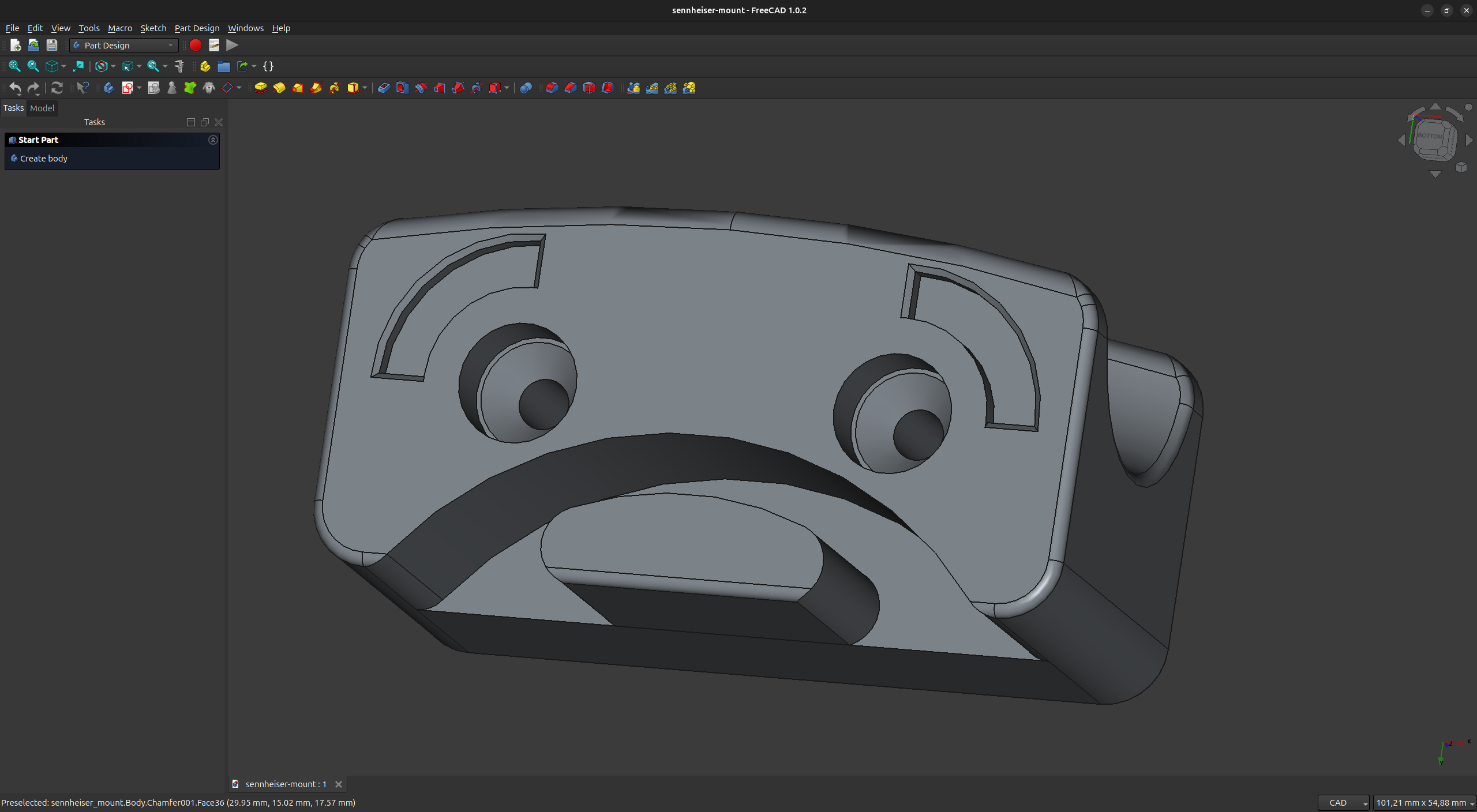 Just modeled a Sennheiser headphones mount in FreeCAD 1.0.2 for 3D-printing.
