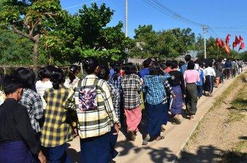 A protest against the military dictatorship in Yinmarbin, Myanmar on Tuesday