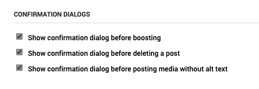 #Mastodon feature request: you know how you can opt in to a confirmation dialog before you boost a post or you publish media without #AltText?
