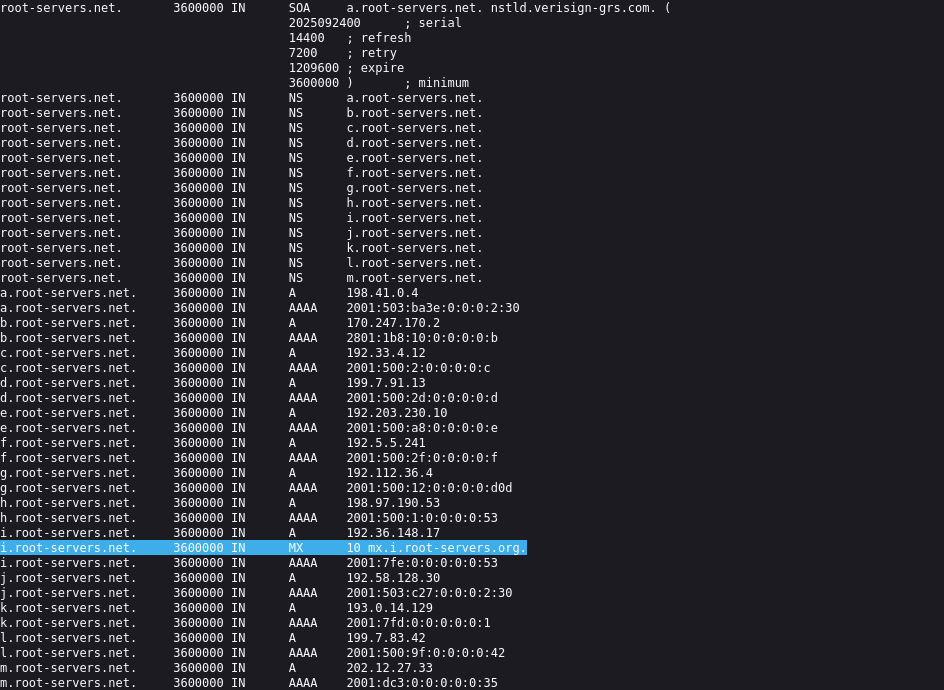 Don't know why but just noticed I root server (operated by Netnod) has a MX record in root zone. See https://mirrors.de.sahilister.net/pub/root-files/root-servers.net.zone