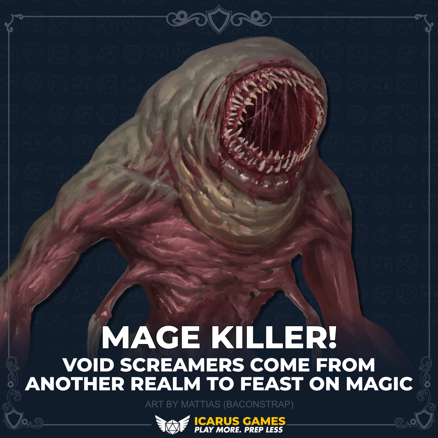 Wizards beware! Void screamers are extra planar hunters drawn to powerful expressions of magic. They tear their way into our reality to hunt for magic to feed on.
