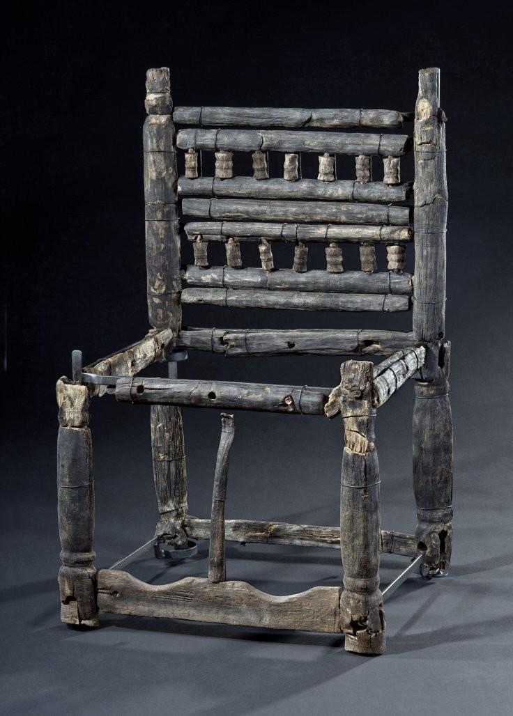 Only few pieces of furniture from early medieval times have been preserved. Due to the water-logged condition of the area, many wooden objects such as this terrific chair made from maple and ash wood survived in a burial at Trossingen.