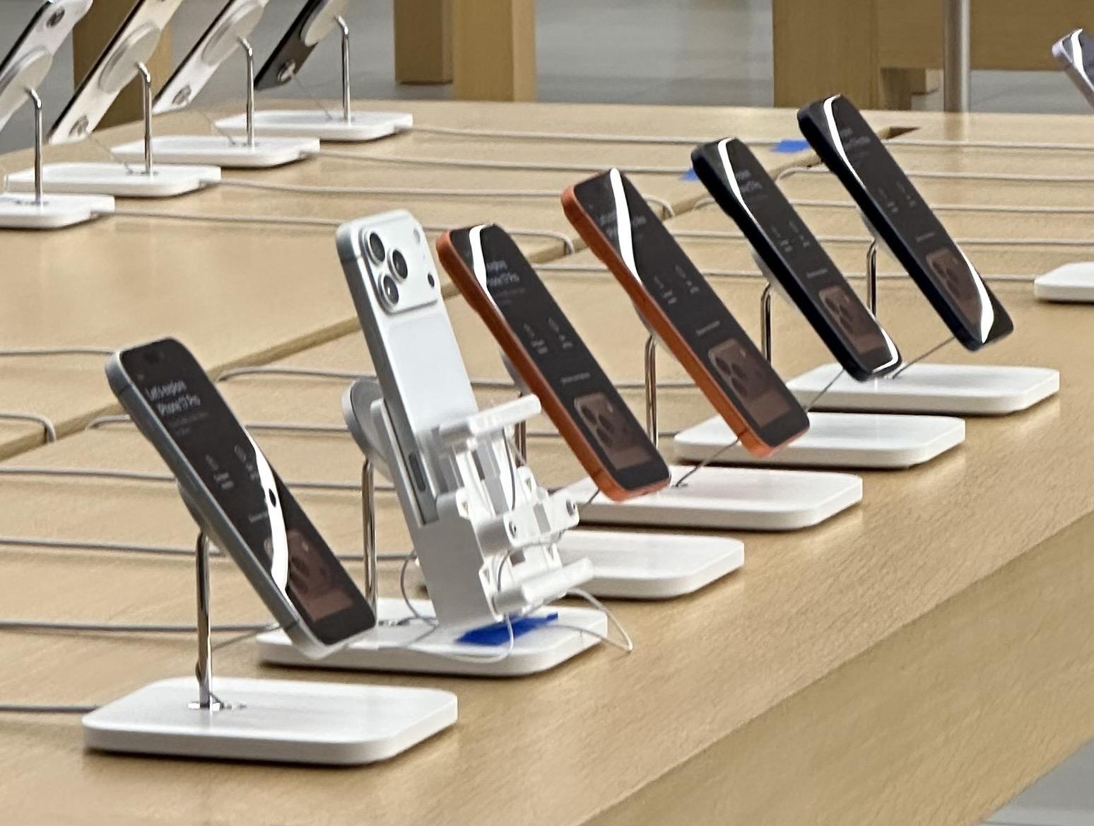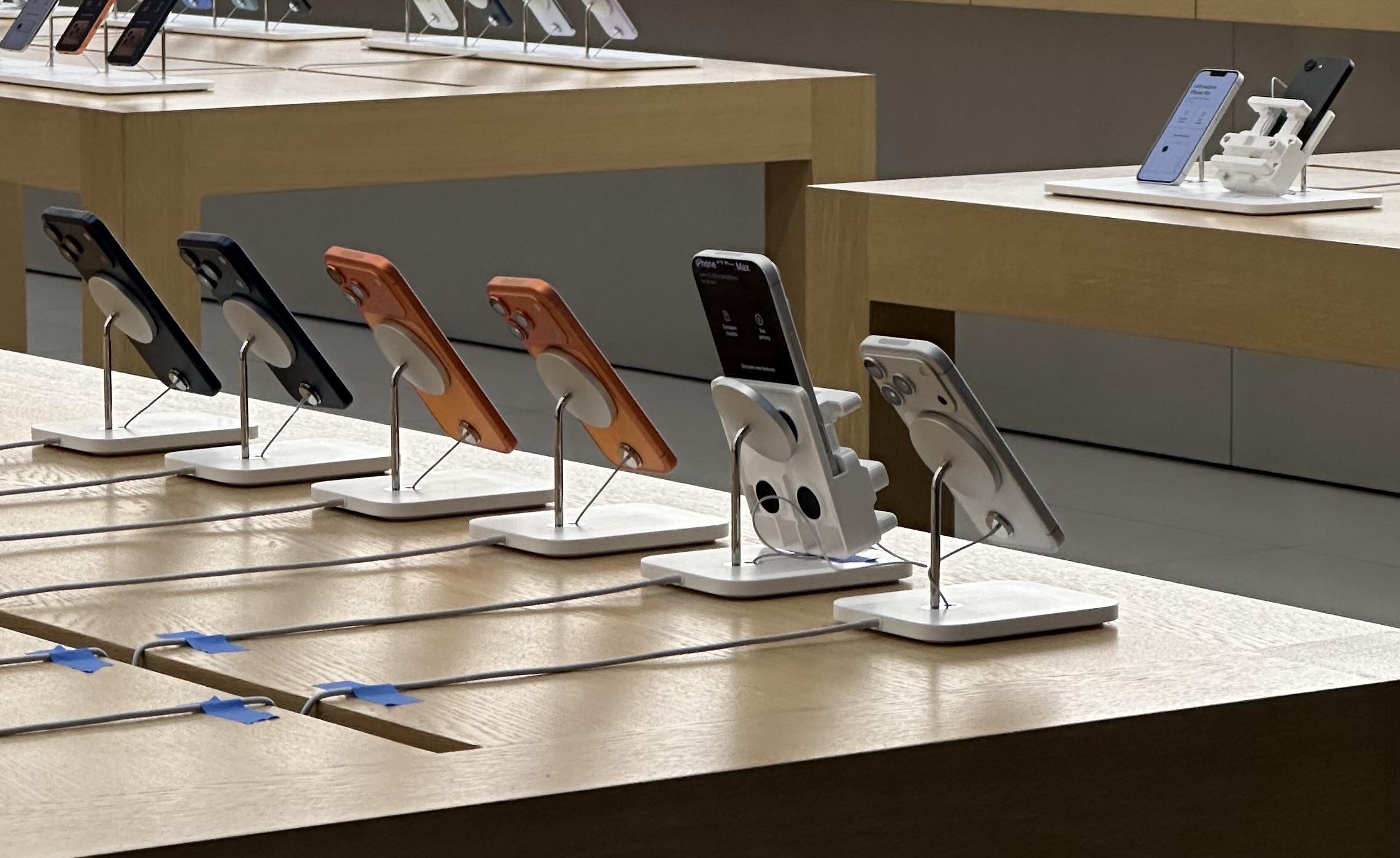 @atpfm #askatp Walking by a Apple Store in Portland before opening and I noticed this contraption attached to a couple display iPhones. Never seen this before in many time walking by this store in the mornings. Maybe for gluing the restraining cord to the display unit? Looks like a display table repair before opening maybe. Thoughts or ideas?