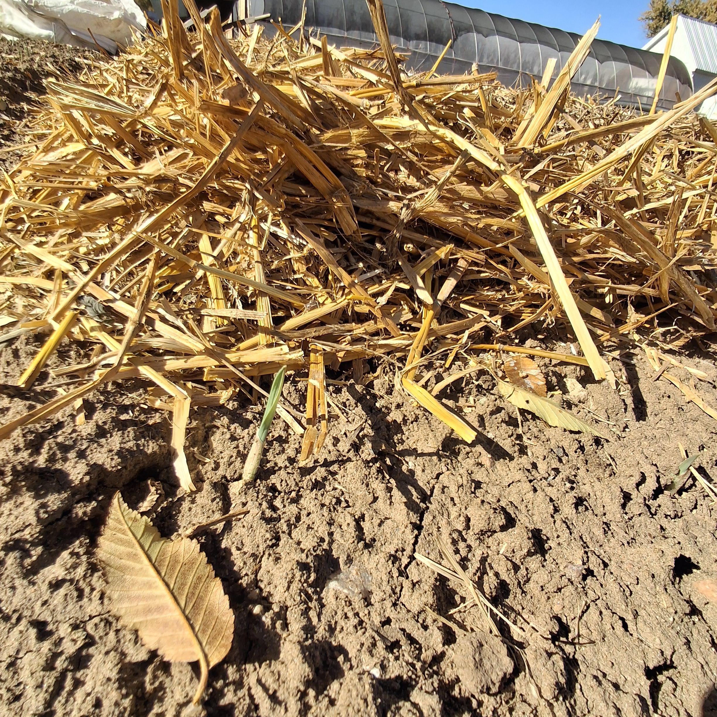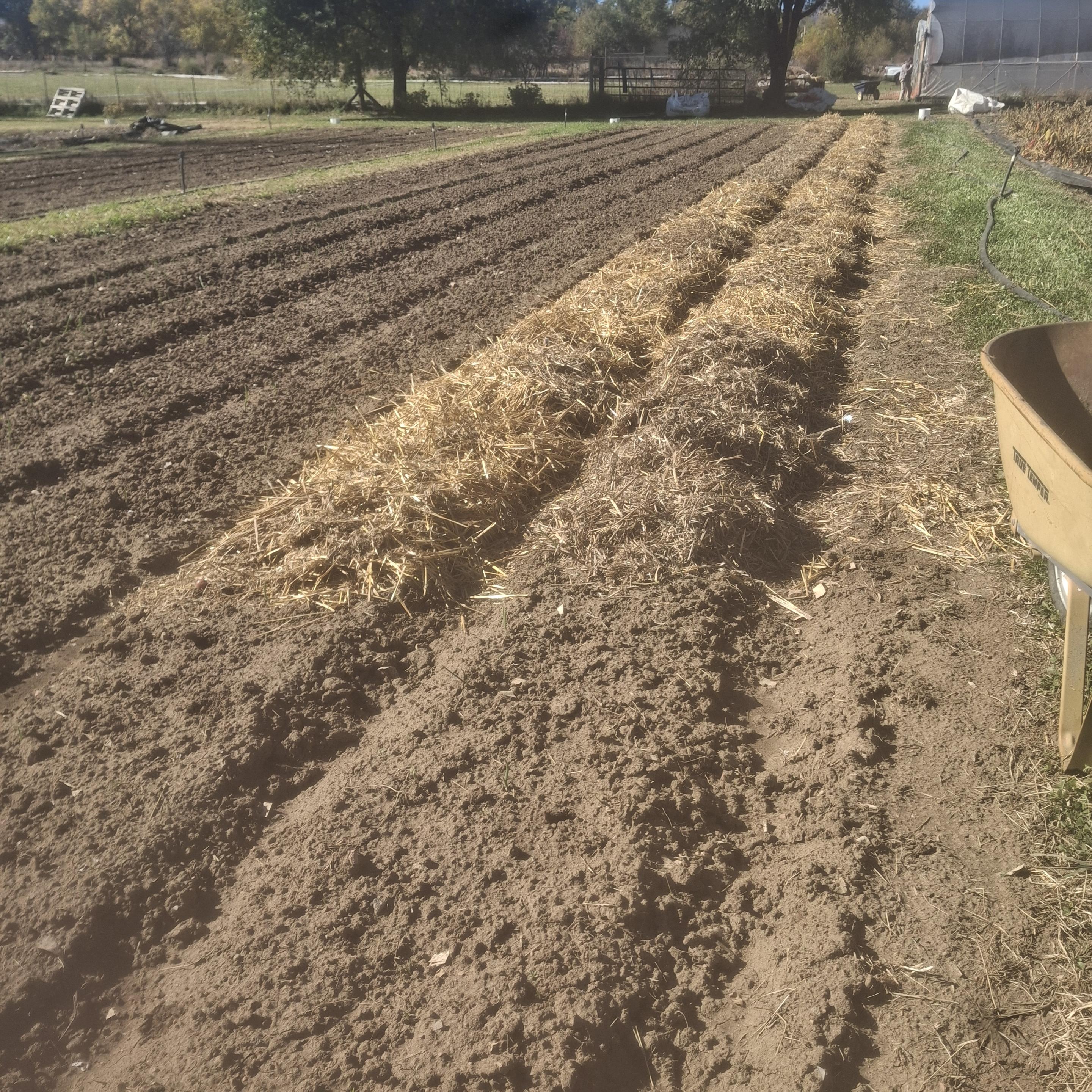I thought the season was over, but still some work to do. Here, we took straw from the tomato beds and used it to mulch the garlic and onions. #sun_mountain_farm_club
