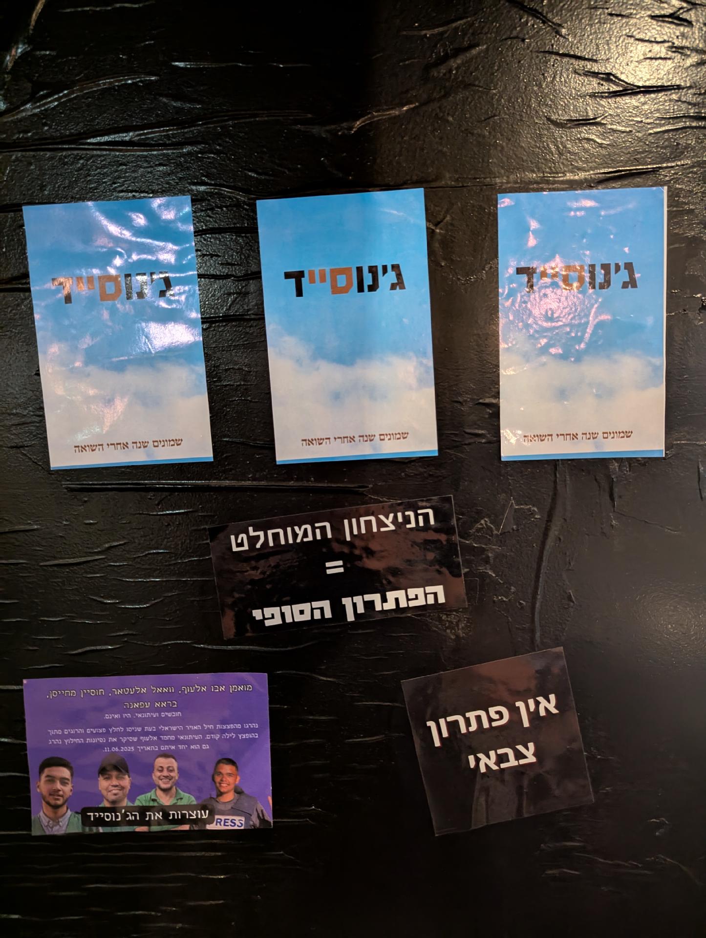 Night‑time sticker spree in the center of Tel Aviv. From top to bottom and left to right: