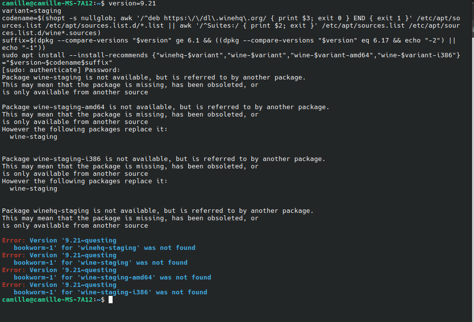 J'ai suivi les étapes d'installation et j'ai installé wine-staging comme demandé (https://github.com/robbert-vdh/yabridge) seulement ça installe la version 11. Je voudrais revenir à la version 9.21 (https://github.com/robbert-vdh/yabridge?tab=readme-ov-file#downgrading-wine), comme recommandé. Seulement je n'arrive pas à faire ça.
