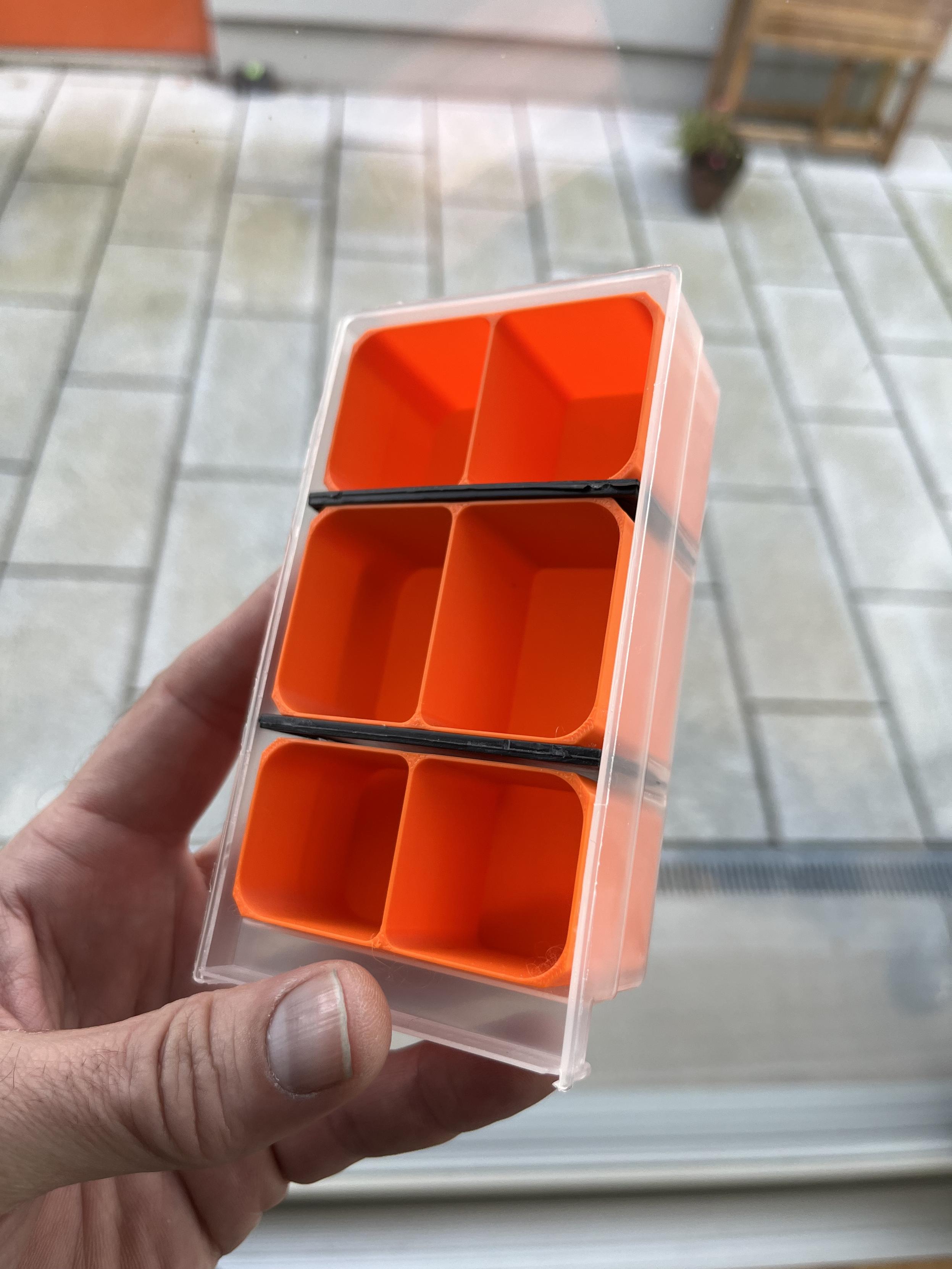 I designed and 3D printed some subdividers for my Lidl storage drawer set so that I can put a lot of small components in there. Very happy with this! #HamRadio #AmateurRadio