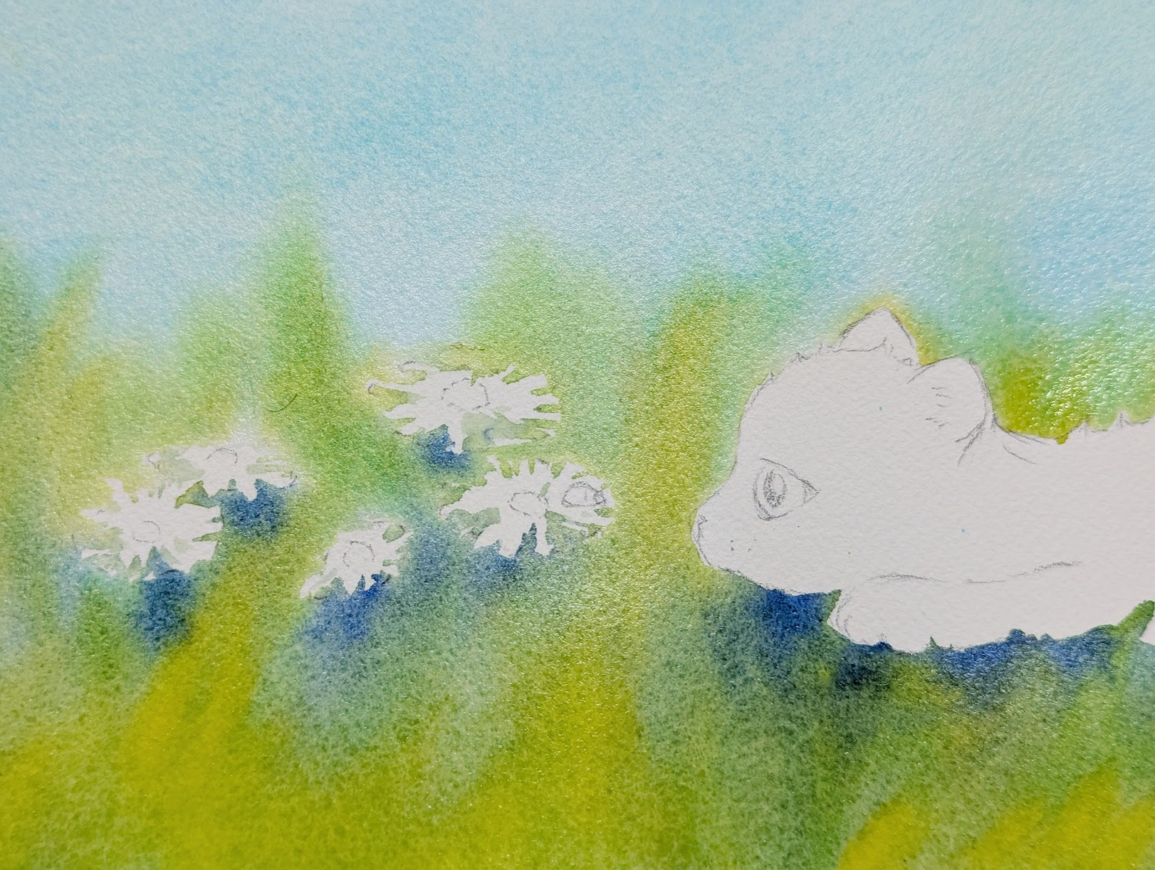 The beginning of a new kitty watercolor painting .....