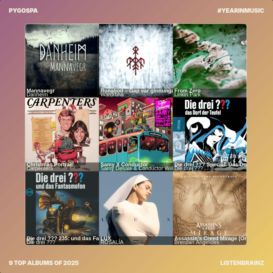 As you can see the image generation is not always the best, but it's actually a website, that you can share, like this: https://listenbrainz.org/user/pygospa/year-in-music/2025/