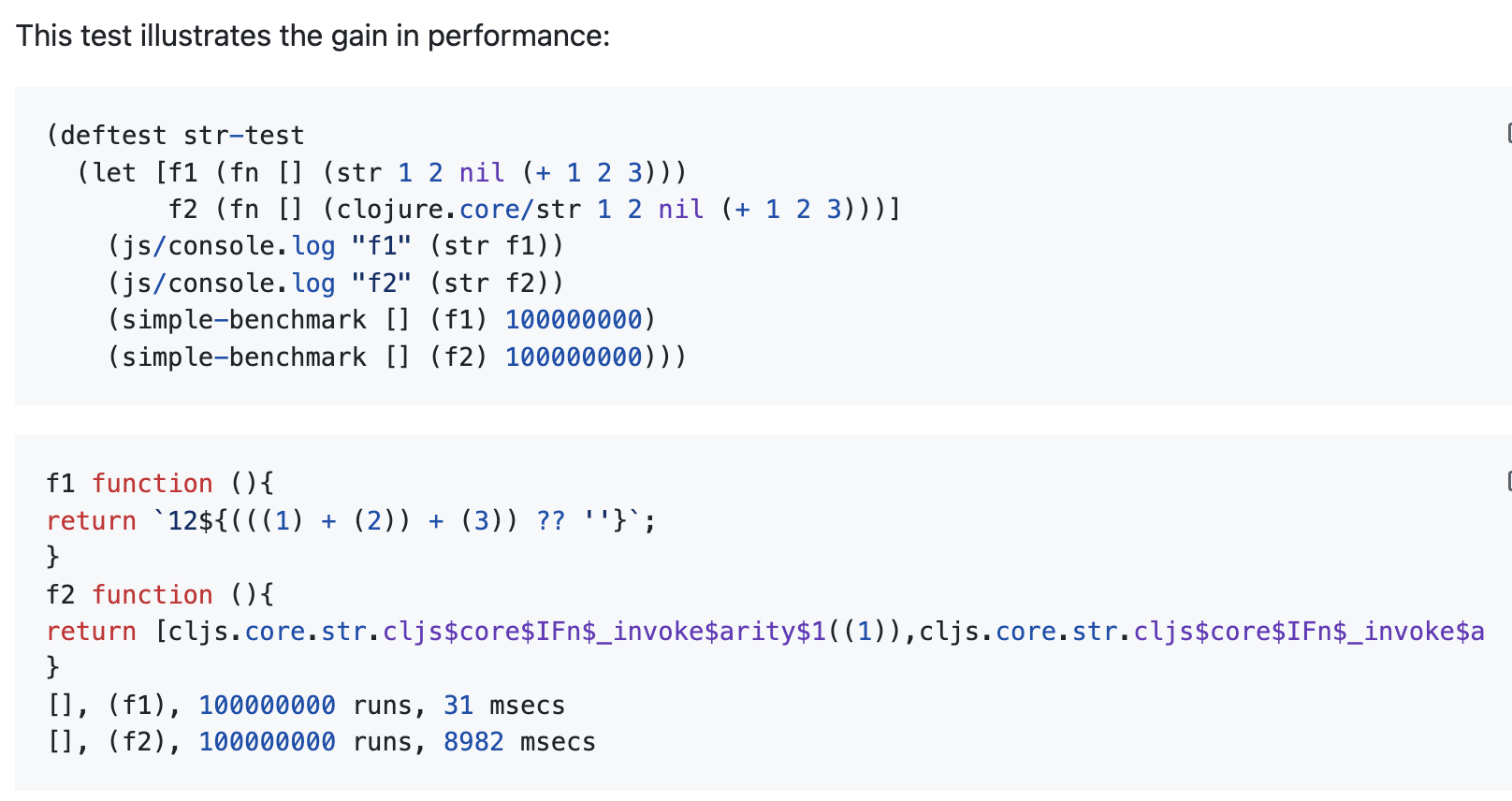 Announcing a little but fun macro as library that optimizes CLJS str almost 300x.