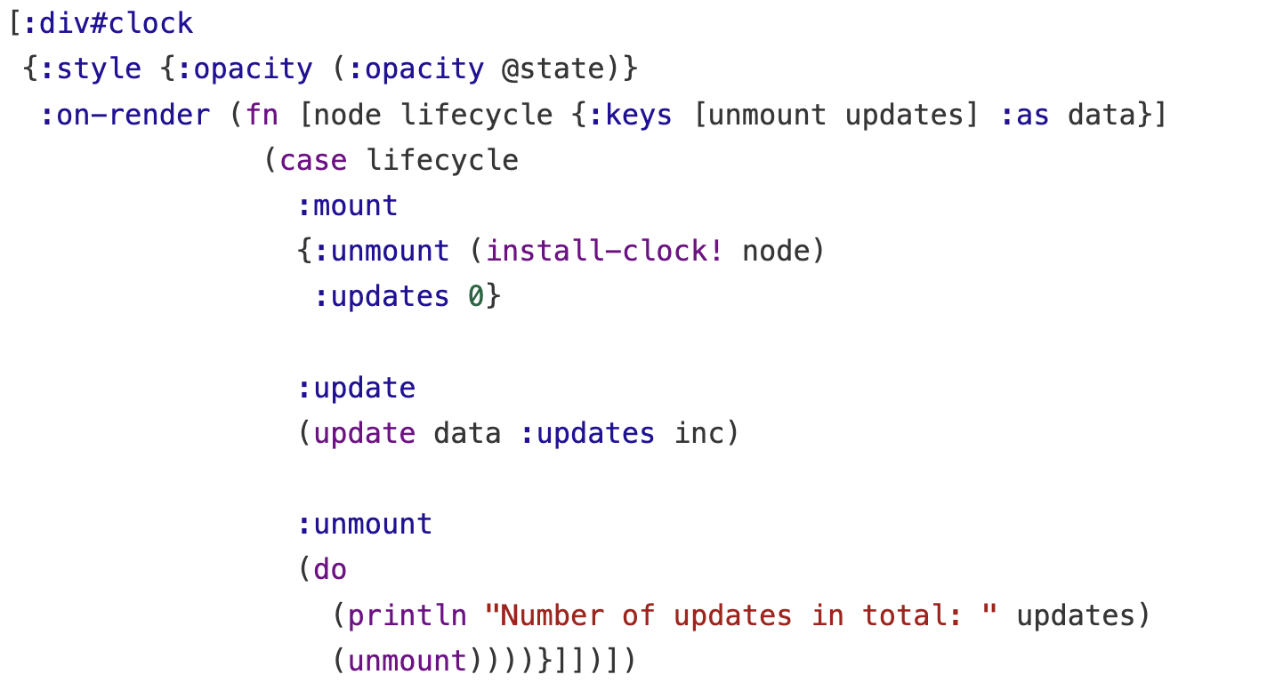 The on-render hook in reagami just got more awesome. You can now pass data from mount to update to unmount, by just returning data!