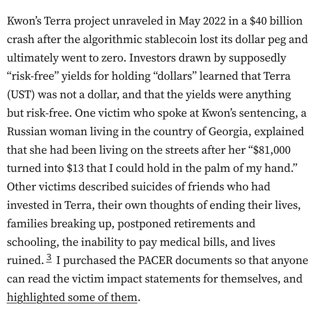 Following hundreds of victim impact statements from people describing how their lives were ruined in the $40 billion Terra implosion in 2022, Do Kwon has been sentenced to fifteen years in prison. He may also serve additional time if sentenced in his home country of South Korea.