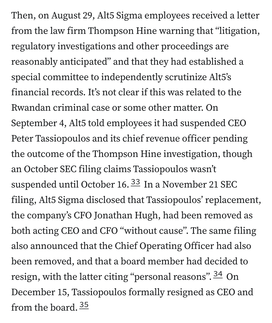 Alt5 Sigma — the Nasdaq-listed company that became a WLFI treasury company in a deal with the Trump family’s World Liberty Financial in August — is in turmoil. The company was found criminally liable in Rwanda, removed a CEO for undisclosed reasons, and has just lost its replacement CEO.