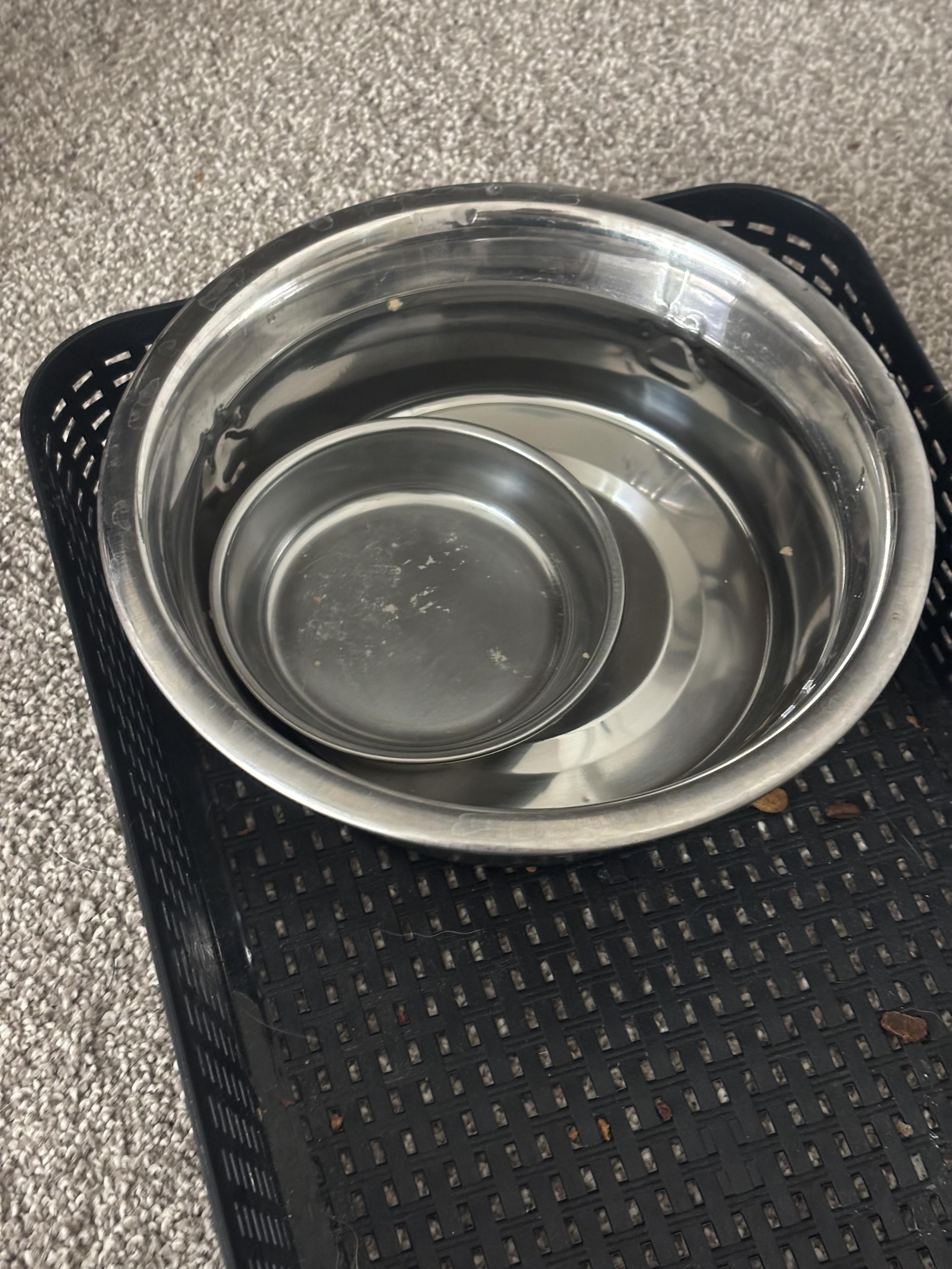 I am unwittingly taking part in a longitudinal study exploring the extent to which various items can be dunked in a water bowl. The PI has most recently collected data on submerging his entire food dish in said water bowl. The methodology behind this data collection remains unknown, as are the hypotheses and implications of this important work.
