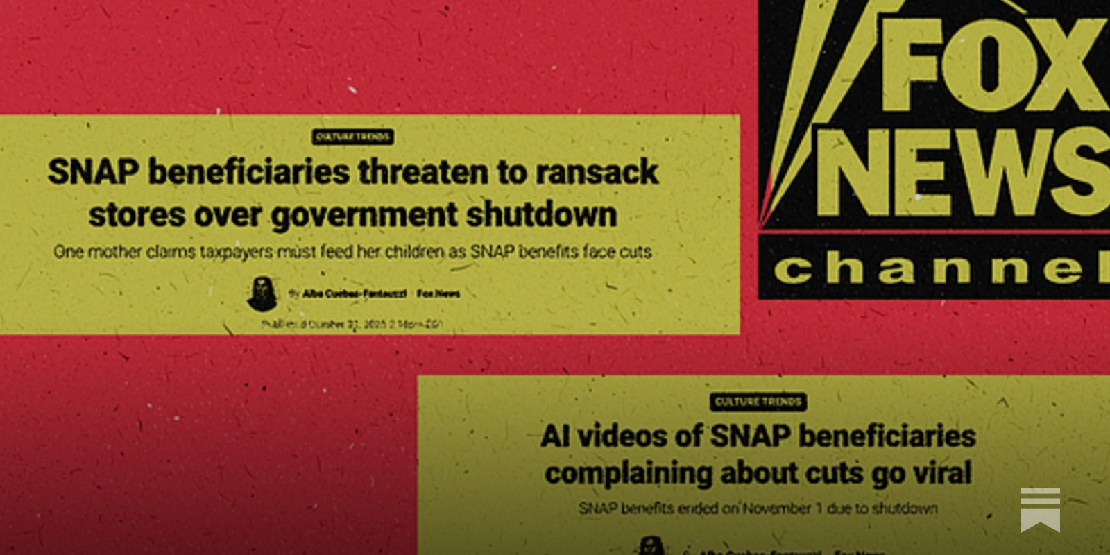 "The videos Fox News presented as evidence of actual SNAP recipients threatening to loot stores were created using tools like OpenAI’s Sora, complete with watermarks that Fox’s screenshots attempted to blur out. Fox News didn’t interview anyone. They didn’t verify that these people were real. They found videos on social media that confirmed every racist stereotype about Black women on public assistance, and they ran with it."
