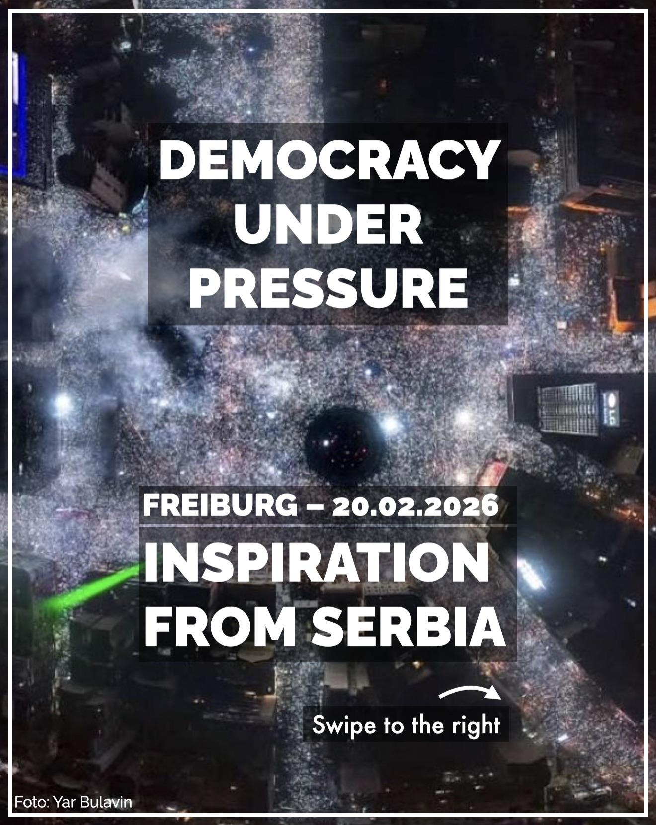Es kommen am 20. Februar sehr kluge Köpfe aus Belgrad nach Freiburg, um darüber zu diskutieren, was man von der demokratischen Bewegung in #Serbien lernen kann. Weil wir keine Simultanübersetzung haben, wird der Austausch auf Englisch stattfinden. Bitte leitet die Info an Interessierte weiter.✊🏻🫶🏻