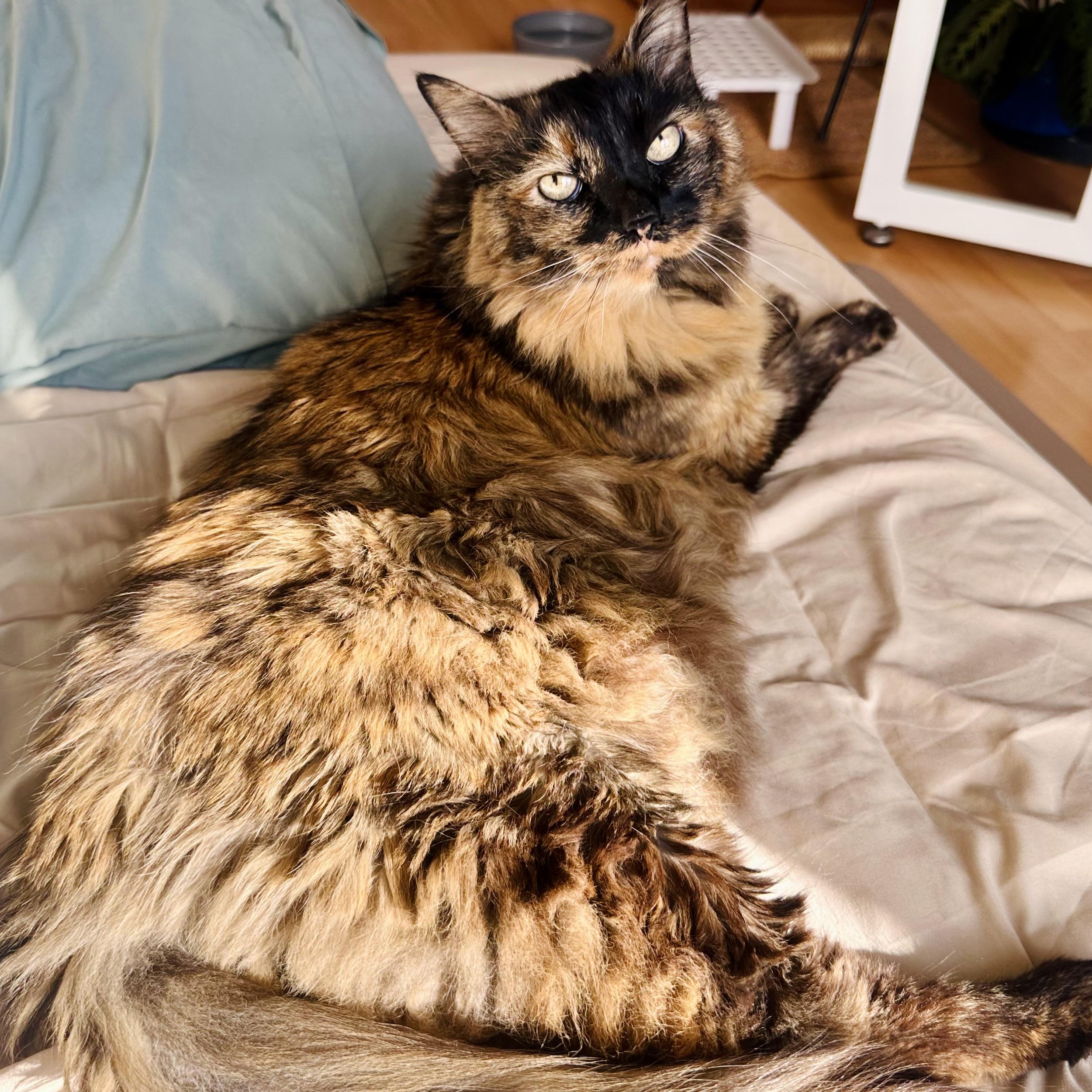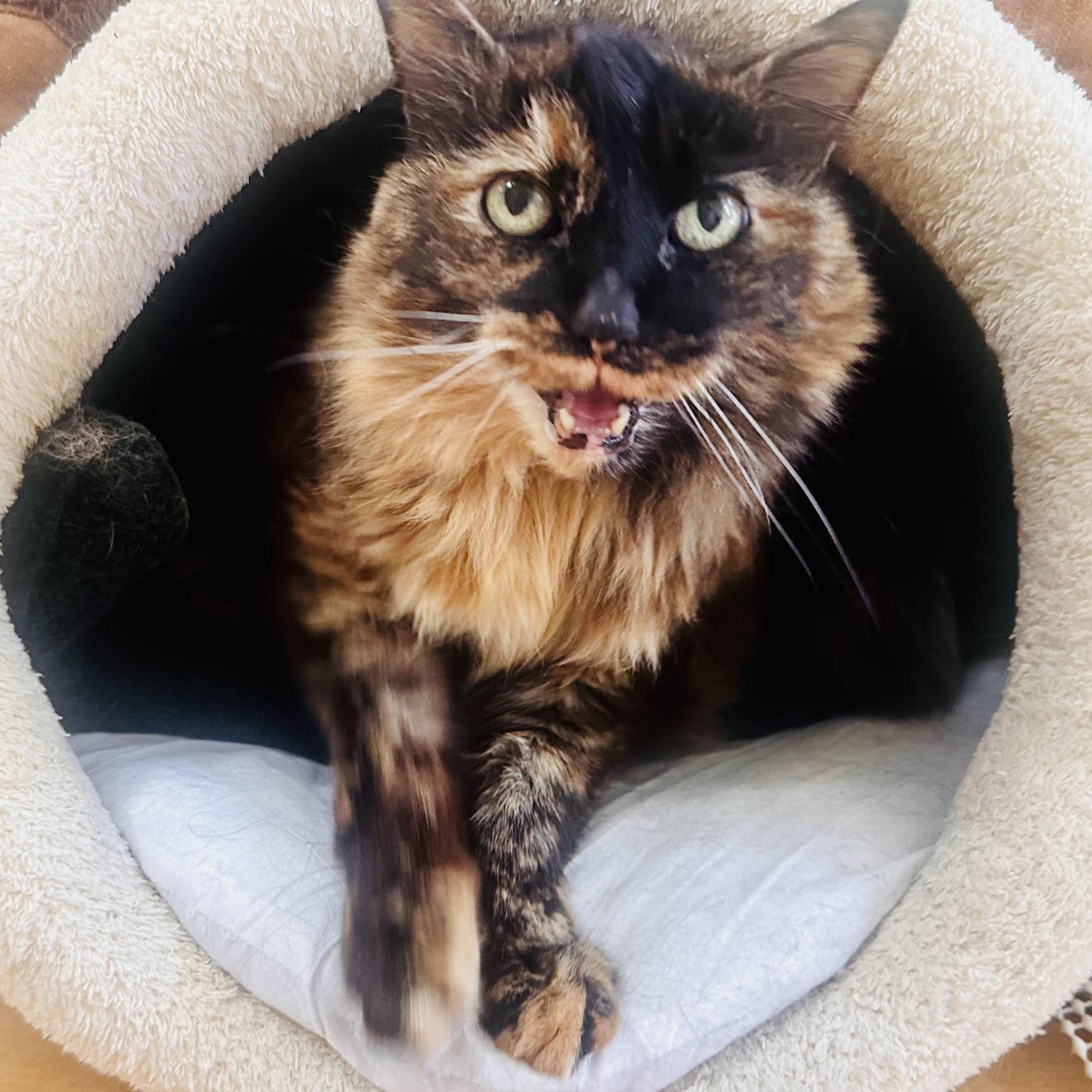 Mila is 19 years old. She loves: screaming, eating chicken, killing mouse toys, looking for crumbs.