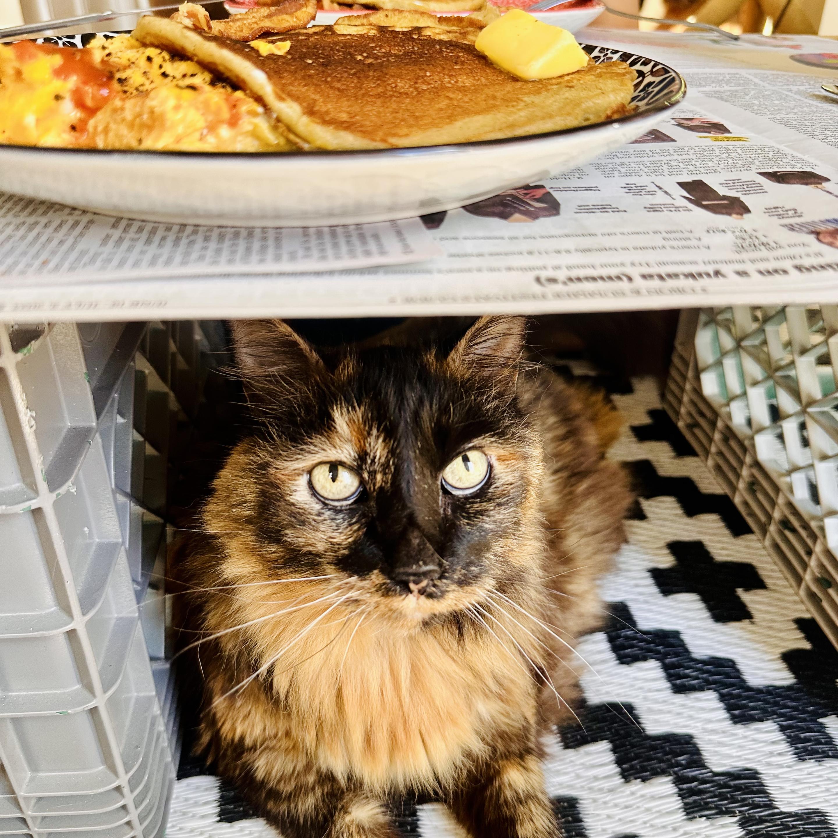 Mila really, really wants my pancakes