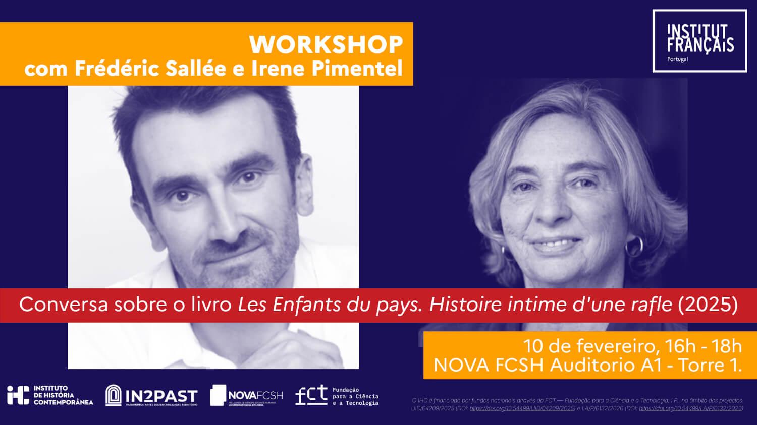 trata-se de um workshop com os historiadores Frédéric Sallée e Irene Flunser Pimentel em torno do livro "Les Enfants du pays. Histoire intime d’une rafle", que o primeiro publicou em 2025.