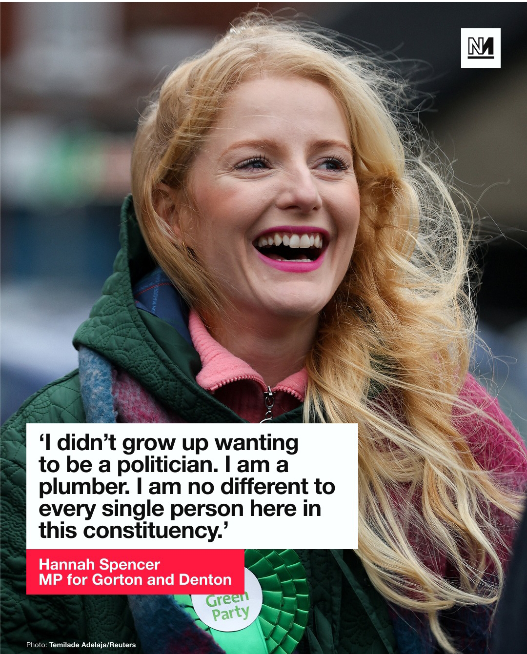 Also just looked Hannah Spencer up on LinkedIn…she is a Gas Safe plumber, but she is also heating engineer who installs air source heat pumps, in case anyone was feeling cynical about the contradiction between installing gas boilers and being a Green Party candidate…and now MP.