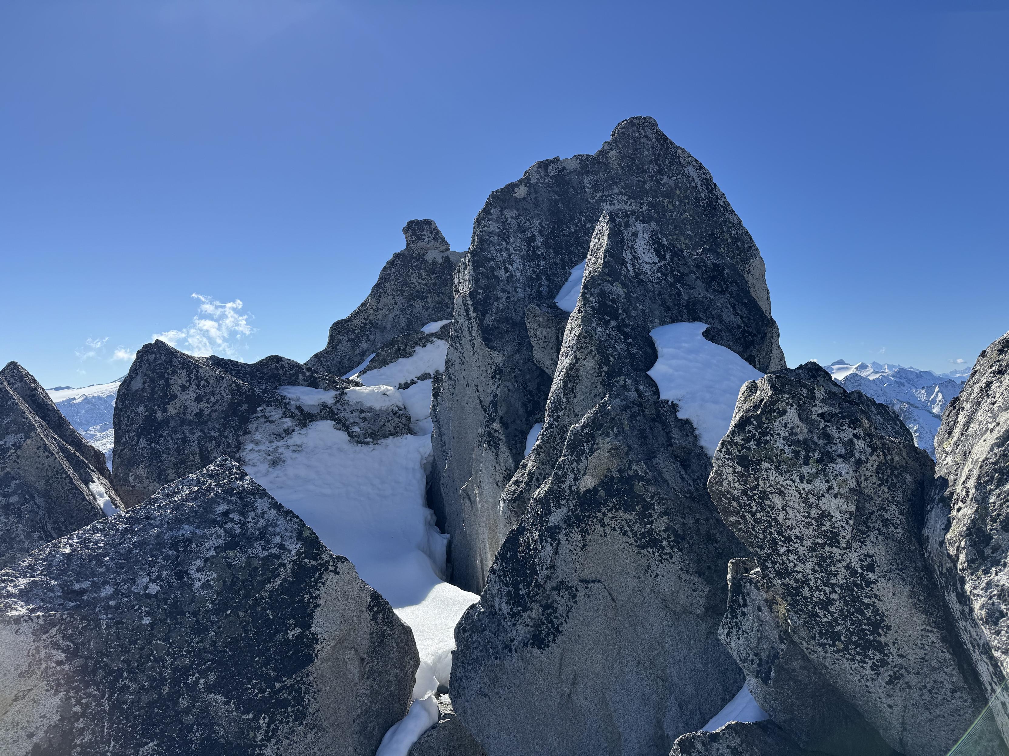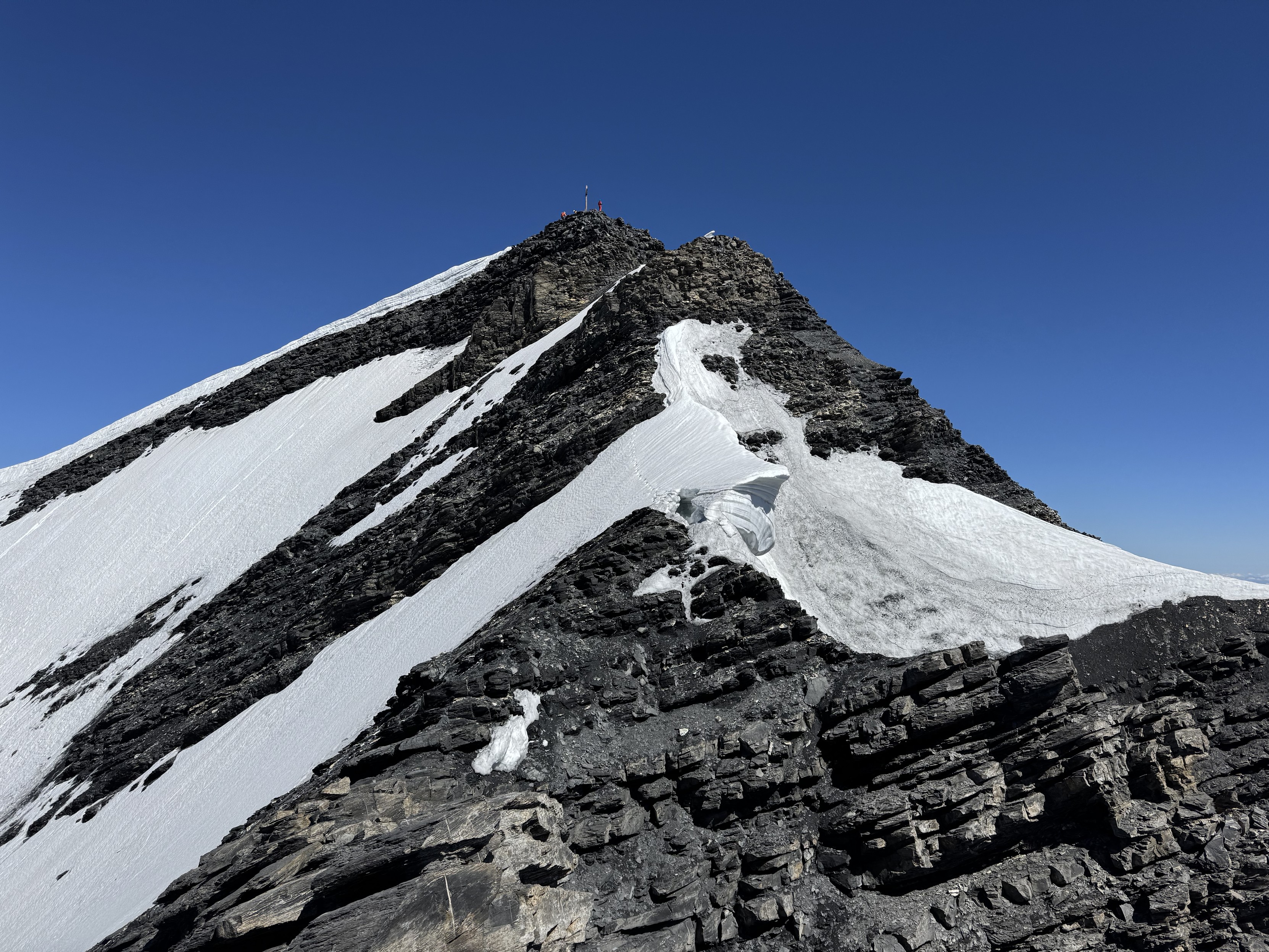 #SOTA summit № 680/1000 today: Saashörner-Südgipfel 3039 m (https://sotl.as/summits/HB/VS-261). Nice climbing/scrambling on the south ridge (II+); mostly good rock. The summit book has completely disintegrated because the plastic container was broken. But a report on the web from 2016 (where the book was still readable) suggests that there were only three entries in 25 years...