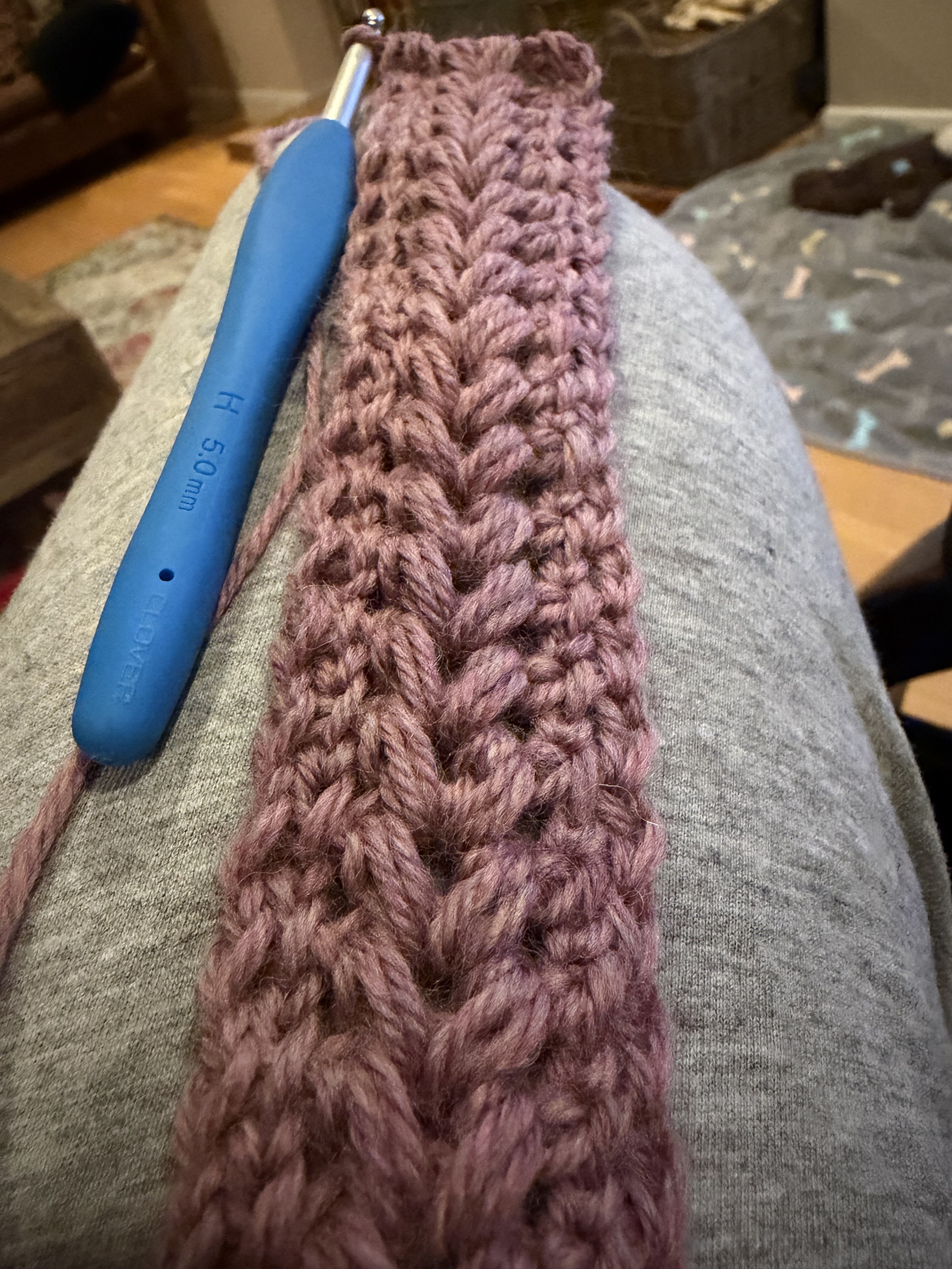 Due to my left arm being temporarily out of service, I am trying to use more voice control on my devices rather than typing one-handed, which is why I now know that when my phone tries to read the word "crocheting" it comes out as "crotch eating."