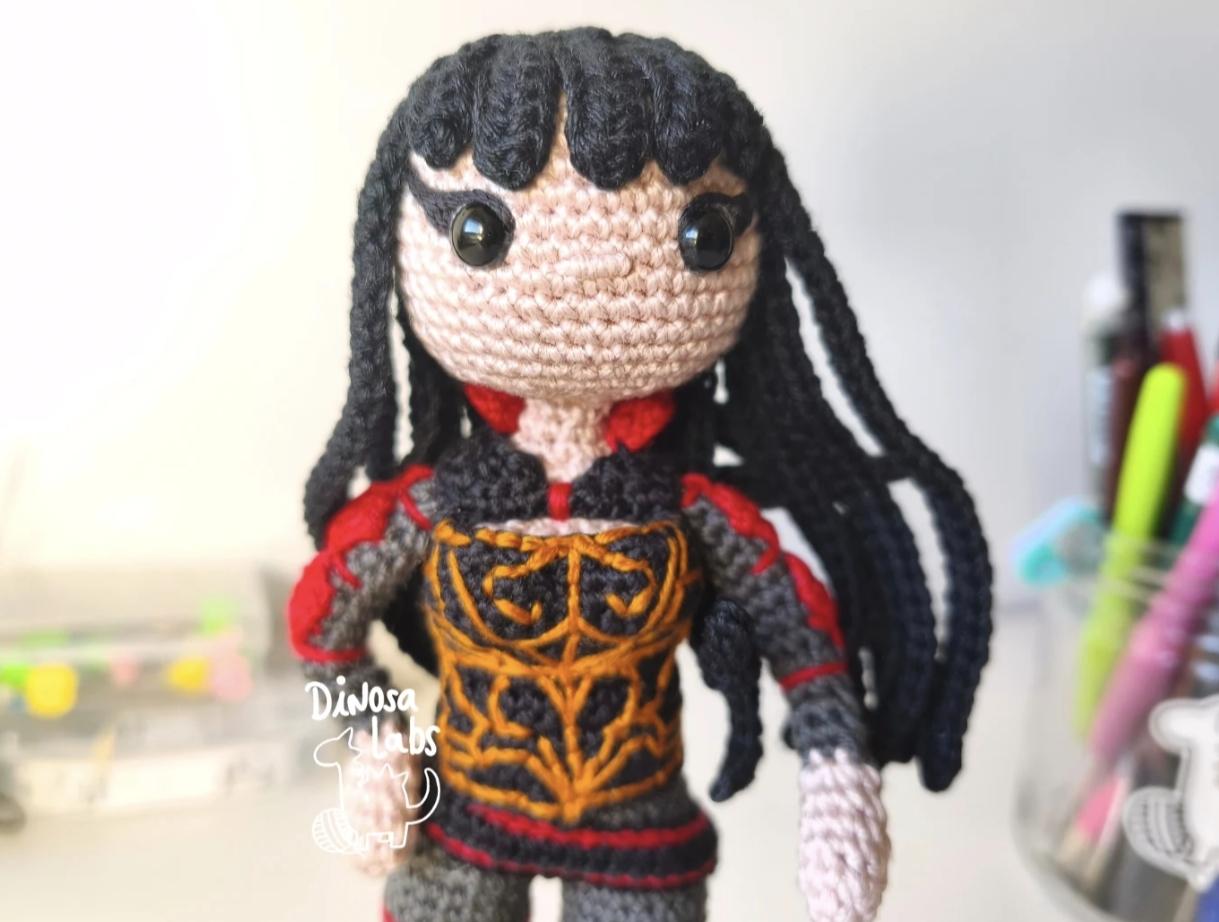 Llevo con esto en silencio desde verano: he tenido el honor de diseñar y tejer a la mismísima Mía Corvere, protagonista de la trilogía "The Nevernight Cronicle" de Jay Kristoff.