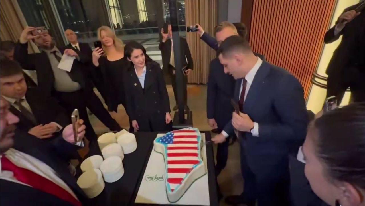 Trump-supporting Republicans led by Florida Congresswoman Anna Paulina Luna prepared and cut a Greenland shaped cake in the colors of the US flag.