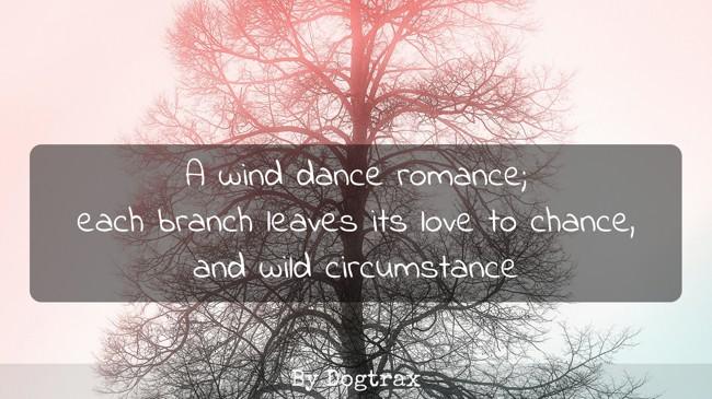 poem with filtered image of a tree A wind dance romance; each branch leaves its love to chance, and wild circumstance