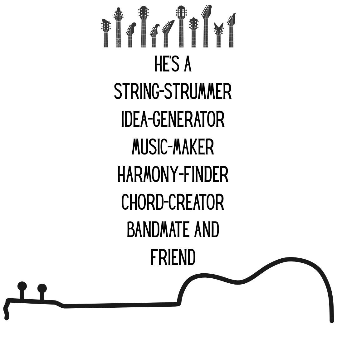 A kenning poem with guitar graphics He's a string-strummer idea-generator music-maker harmony-finder chord-creator bandmate and friend