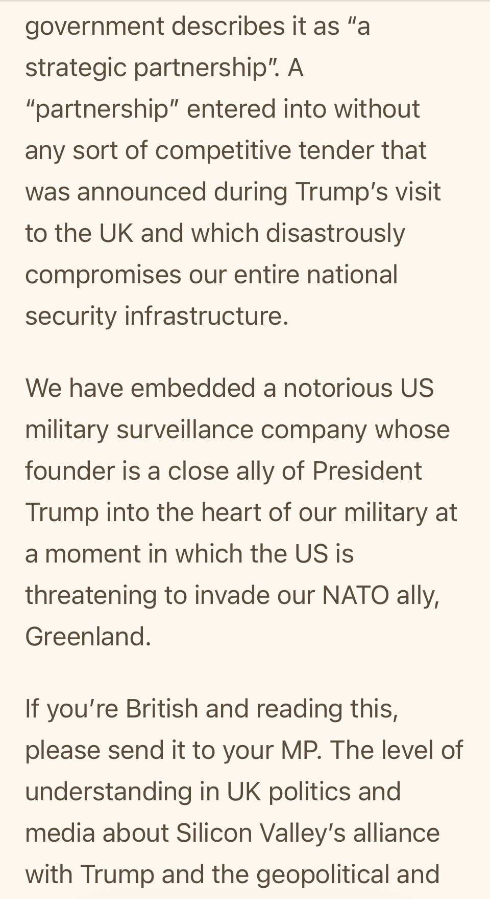 BTW should you not know the UK has just given the single biggest ever MoD contract to Palantir (who also supply ICE and The Occupiers)