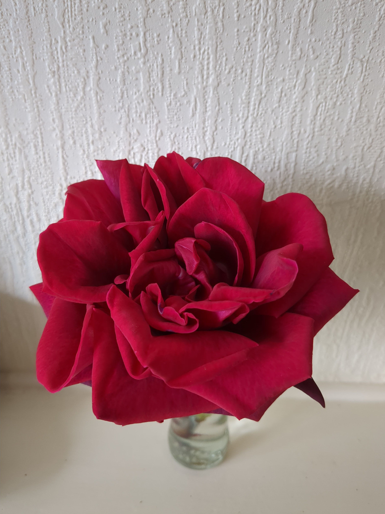 The first rose of spring: the Deep Secret, which was still blooming back in July.