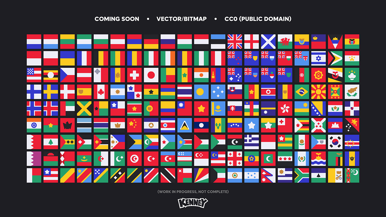 Flags pack will be released March 15th (hopefully), who knew it was a lot of work to draw all flags of the world 😅 It'll be released as CC0, in both vector and bitmap with spritesheet(s)!