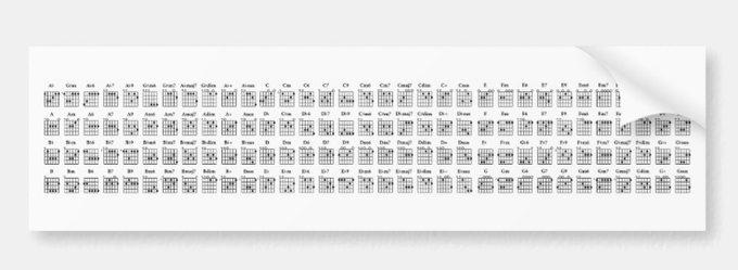 Stick it on your guitar case. 3"l x 11"w. Made from durable vinyl with a strong adhesive back. 100% weatherproof https://zazzle.com/guitar_chords_sticker-256625967184205670 #stickers #music #musician #Guitar