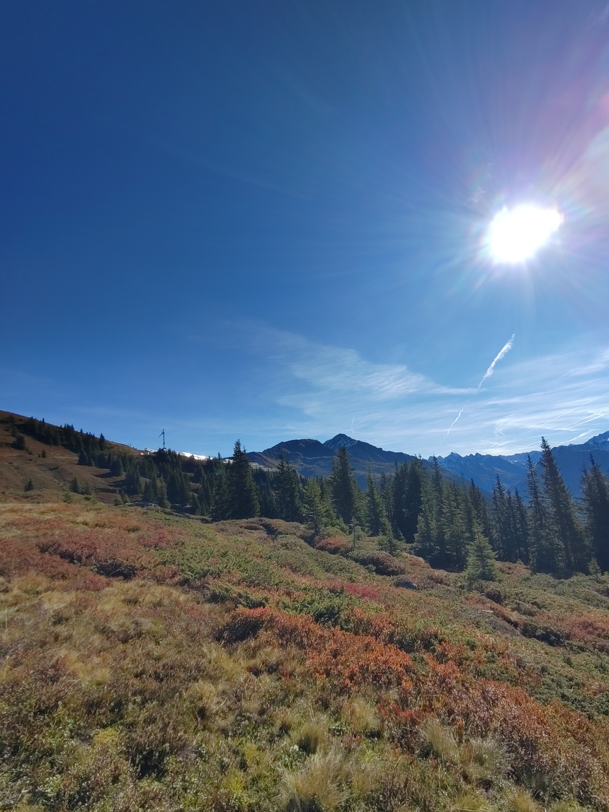 Weekend in the Wetterstein Range to enjoy the crisp autumn weather — distant peak: Frauenalplspitz. Two Red Admirals (Vanessa atalanta) crossed the scene.