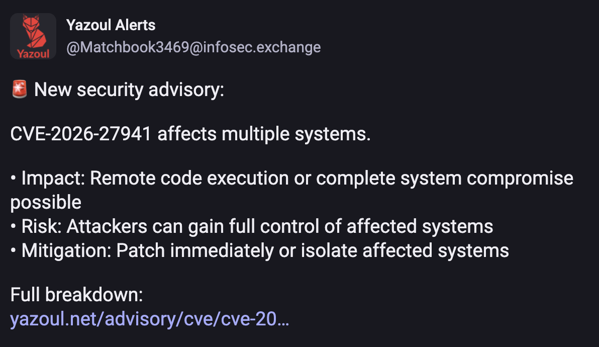 Hey, security vendors.. this is a bullshit anti-pattern. This vendor and others like it intentionally leave out the impacted vendor, products, technologies, and environments. There is zero context here. Readers would need to follow the link or independently research the CVE to see if they care.