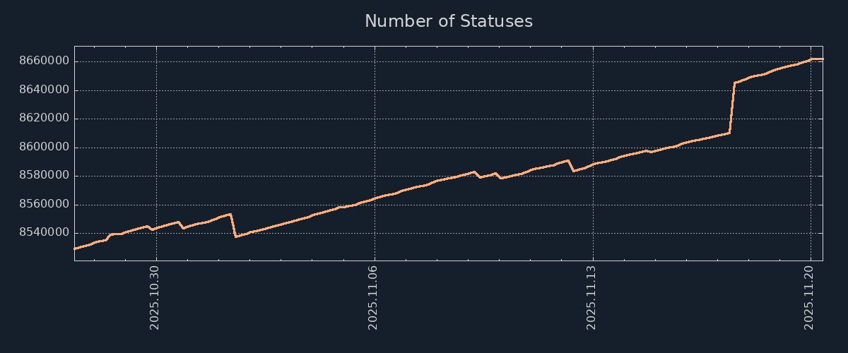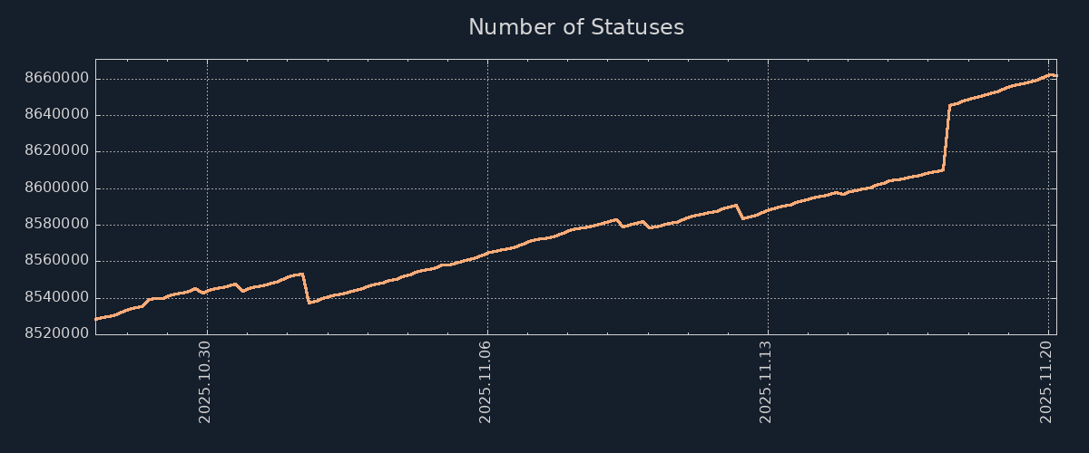 # Akkoma # Statistics 2025-11-20 09:00 CET