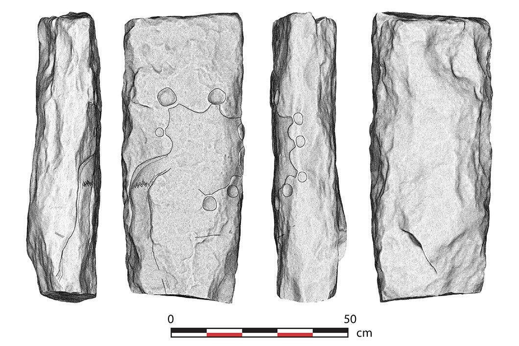 #map The oldest map ever drawn, dating back to 9,000 years and discovered in Jordan. The ‘Jibal al-Khashabiyeh engraved stone’ depicts a ‘desert kite’, a hunting device used in the Middle East during the Neolithic. The maps was drawn on a 92 kg limestone block nearly 80 cm high using a stone tool. The block was recovered in 2015, and the results of the analyses were published in 2023 in the journal PLOS ONE