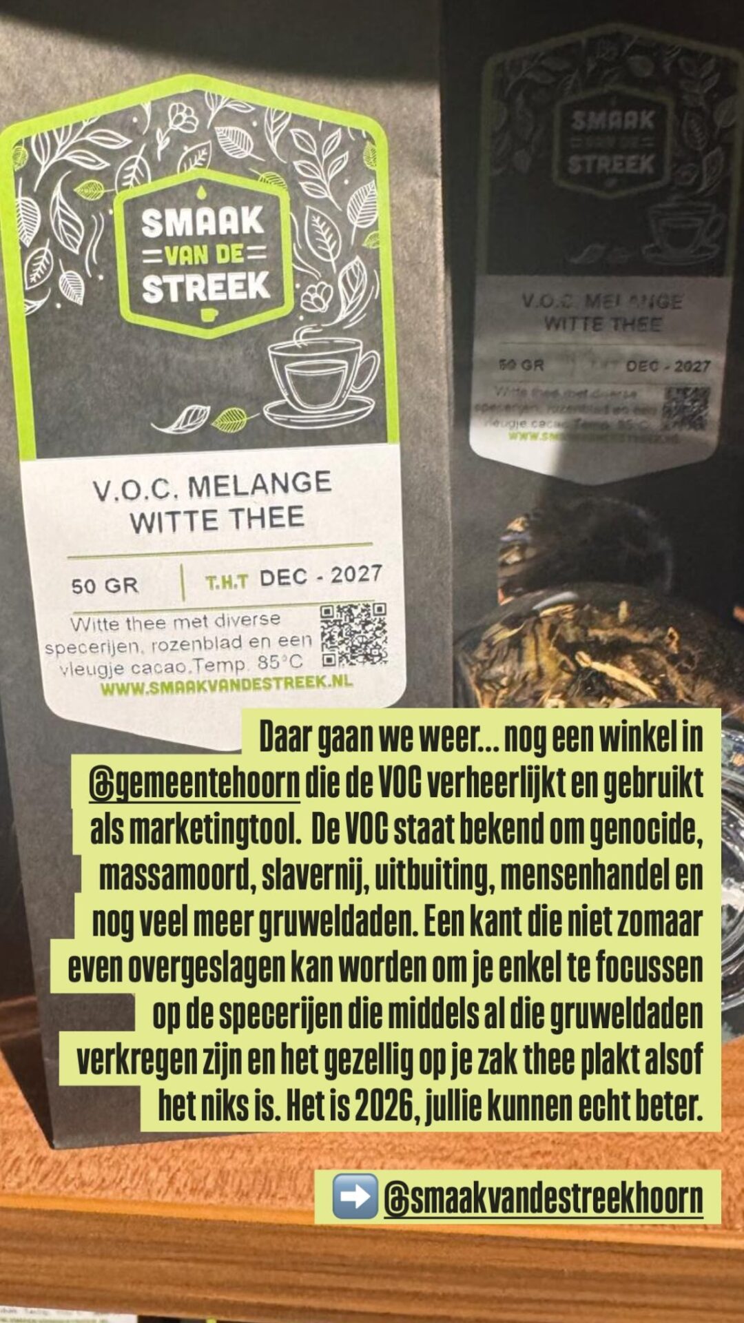 "Met de posters maken dekoloniale activisten duidelijk dat ze genoeg hebben van het praten tot je een ons weegt, genoeg van het verheerlijkende gezwets over een koloniale misdadiger, genoeg van de koloniale trots en nostalgie, genoeg van het gejubel en gejuich over de VOC. Want 'je kan niet rechtpraten wat krom is. Het is en blijft een genocidepleger.'"