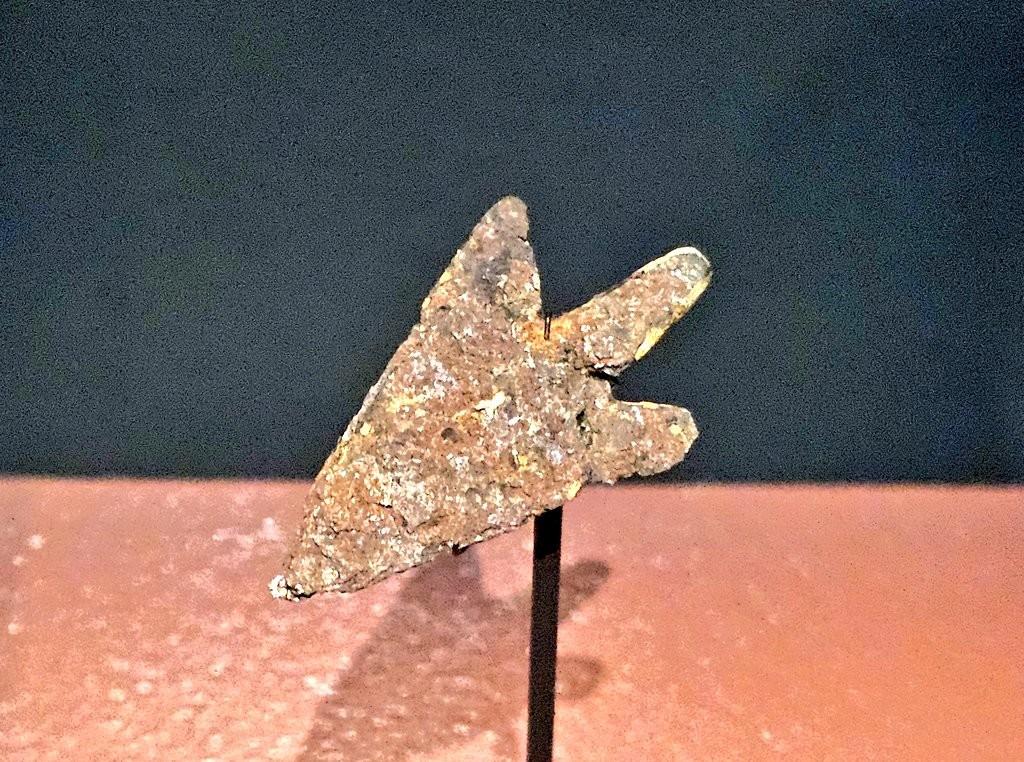 An arrowhead made of #meteorite iron: around 1,500 BC, a meteorite struck #Estonia. A fragment of it arrived - presumably in the baggage of an amber trader - at what is now Lake Biel, #Switzerland. An arrowhead was then made there from the cosmic iron.