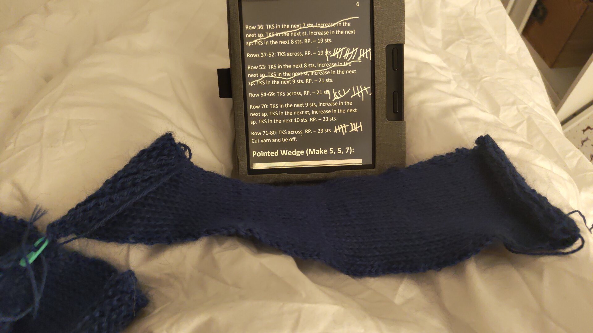 last night I finished the second d section of skirt for my Elf Coat. to my delight, its the same length as the first piece I made last year (although still several in chest shorter than it should).
