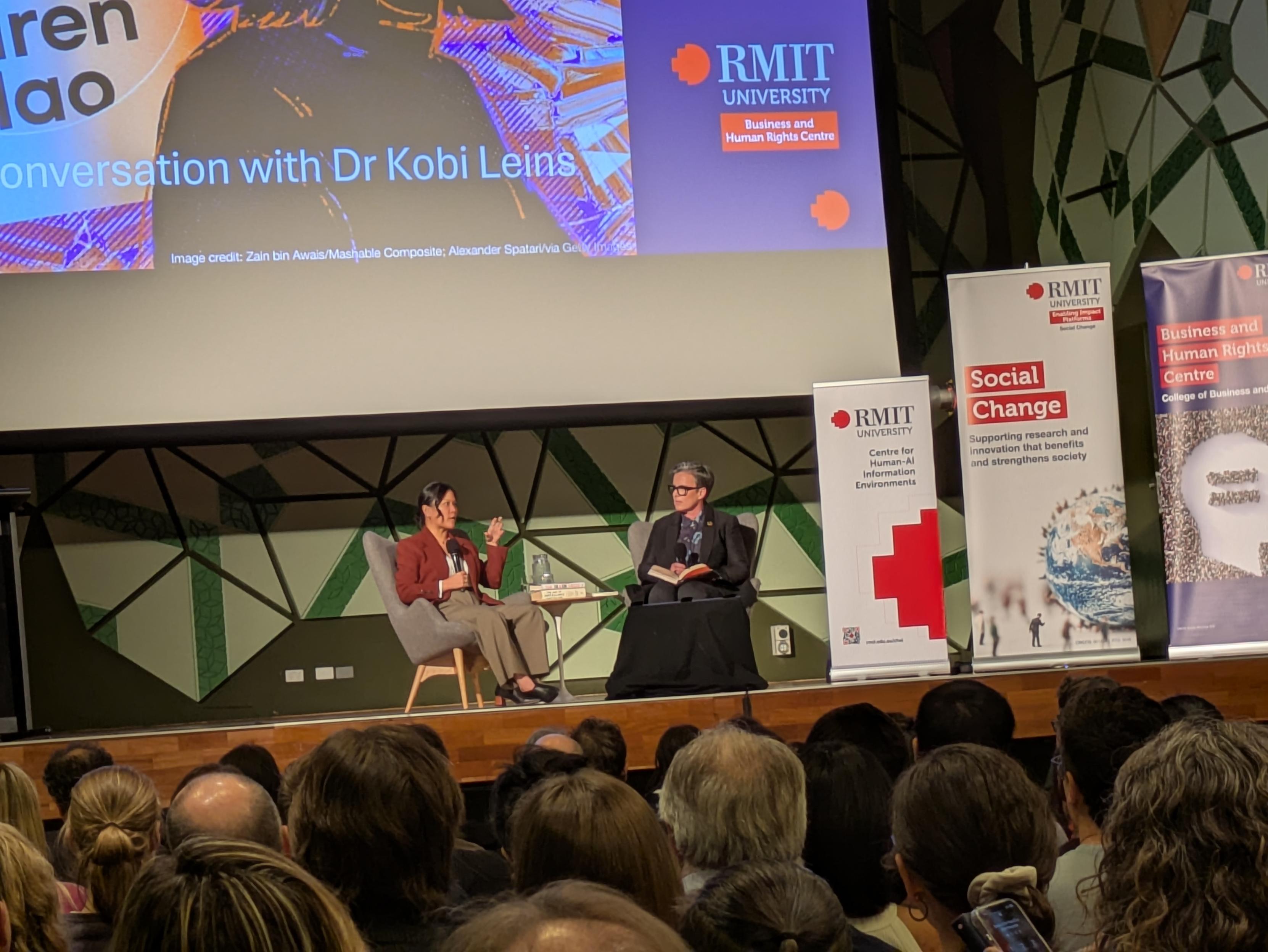 Karen Hao with Kobi Leins at RMIT Storey Hall