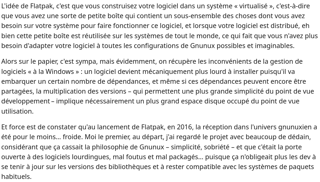 Je vous explique pourquoi, en fait, Flatpak, bah c'est un truc bien foutu, bien pratique et qui œuvre au respect des standards (si si).