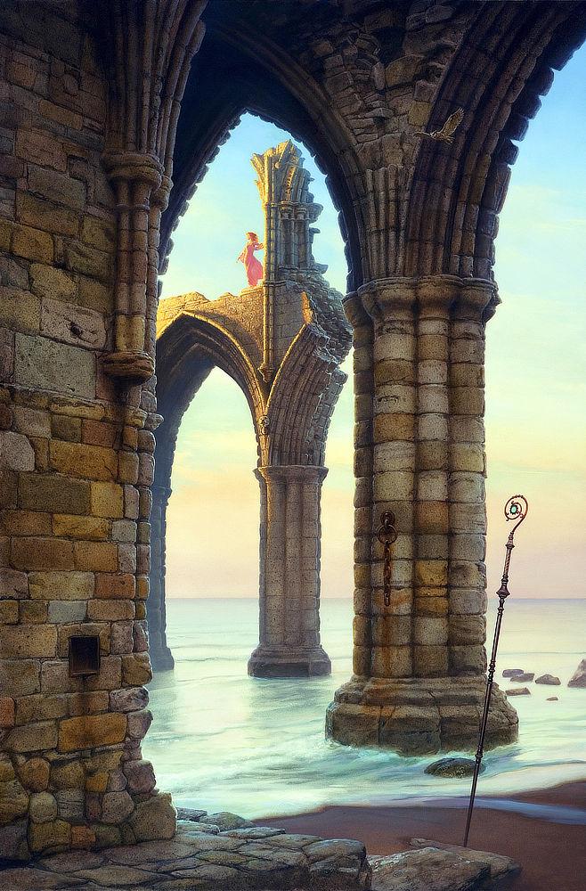 In the Portals paintings, enlightenment is found only when one gets beyond the architecture of established formal belief systems. 1/2