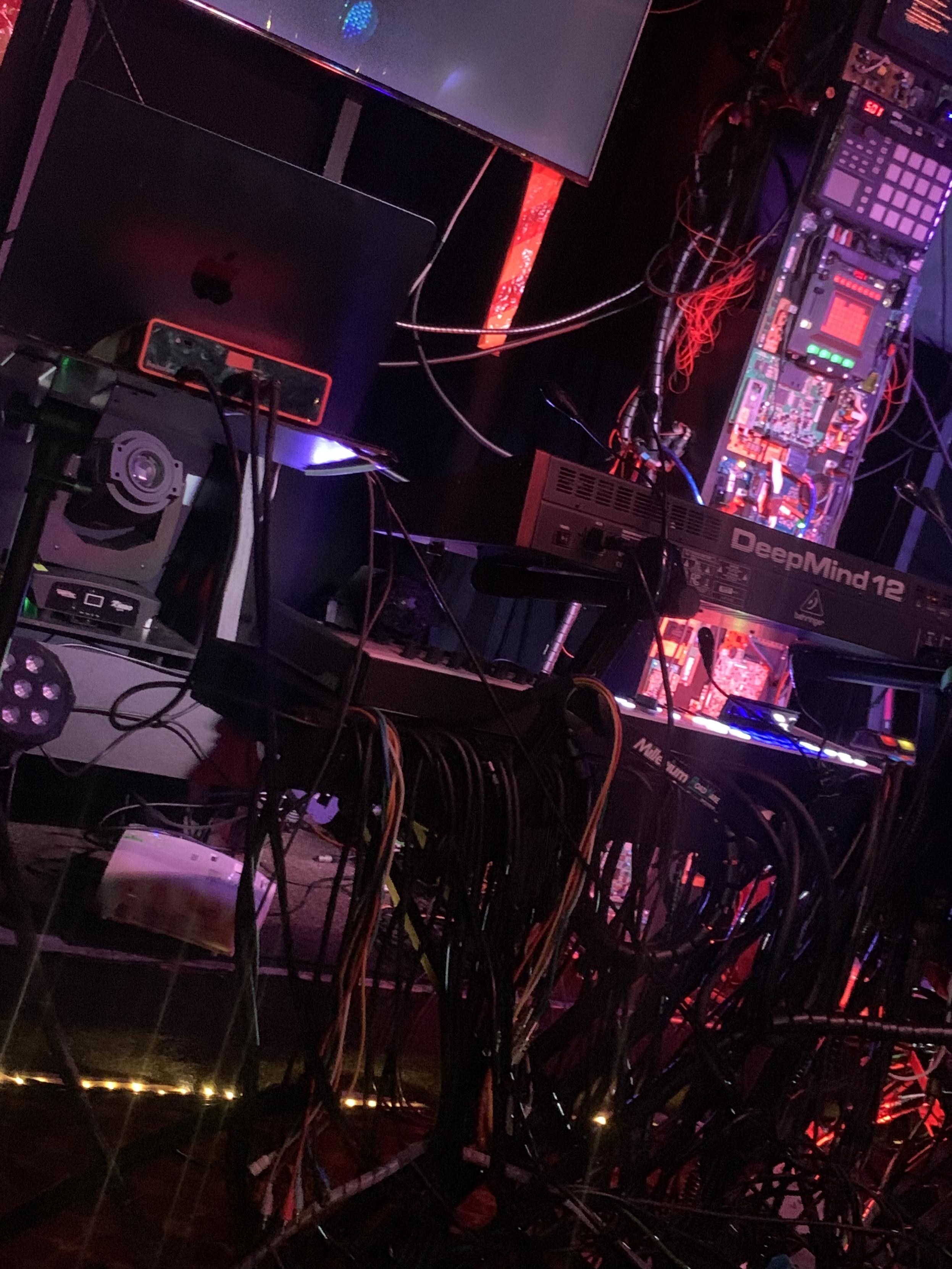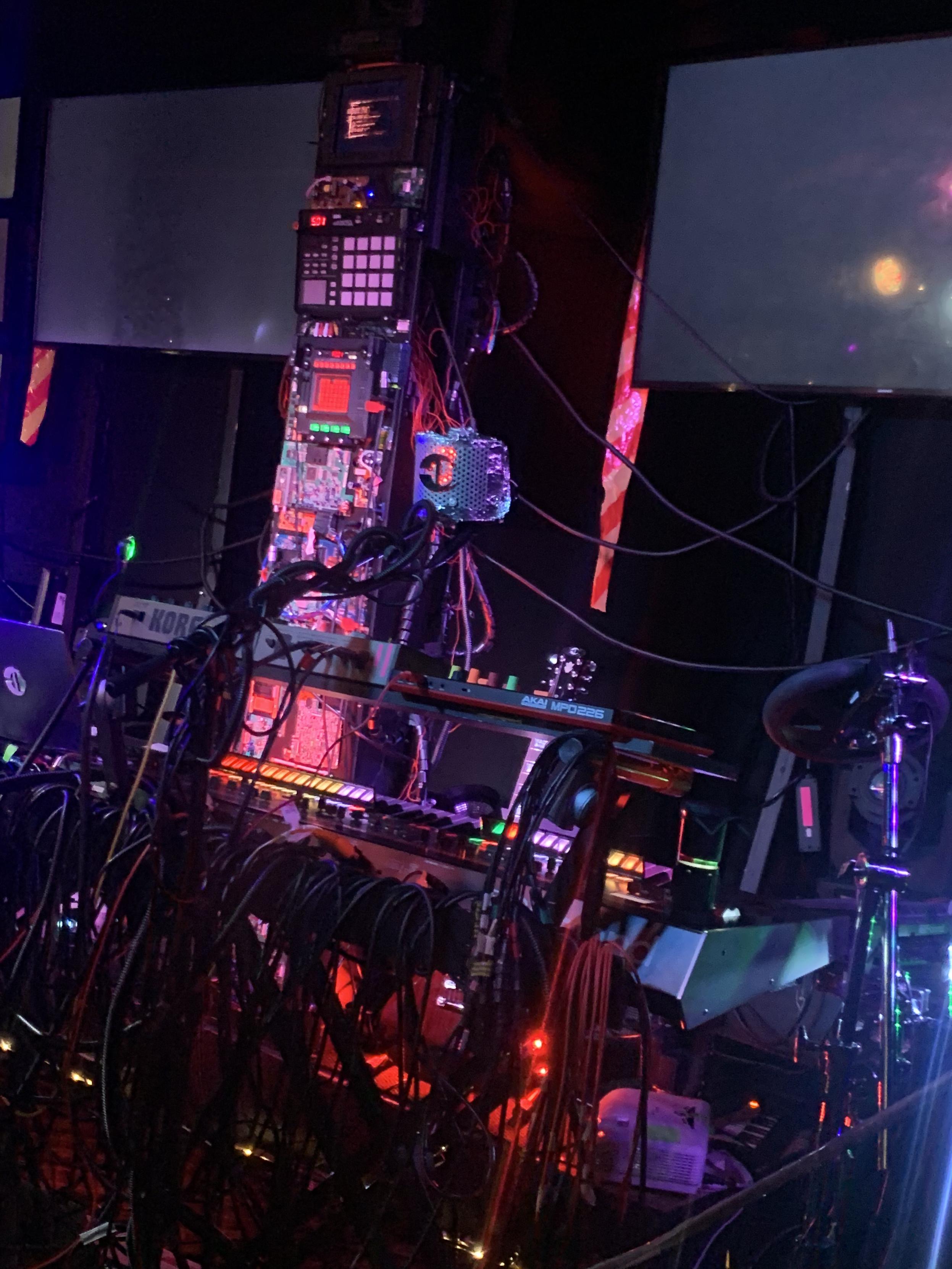 Aivan huippu. Lava täynnä vehkeitä. Kilometreittäin piuhaa, syntikoita, MIDI-synkattuja ledinauhoja, stepperimoottoreita, avaruusvisuja, savua, kosmista äänimaailmaa ja tarinankerrontaa. Ja näiden kosmonauttien kotipaikkana #tampere ja #nokia.
