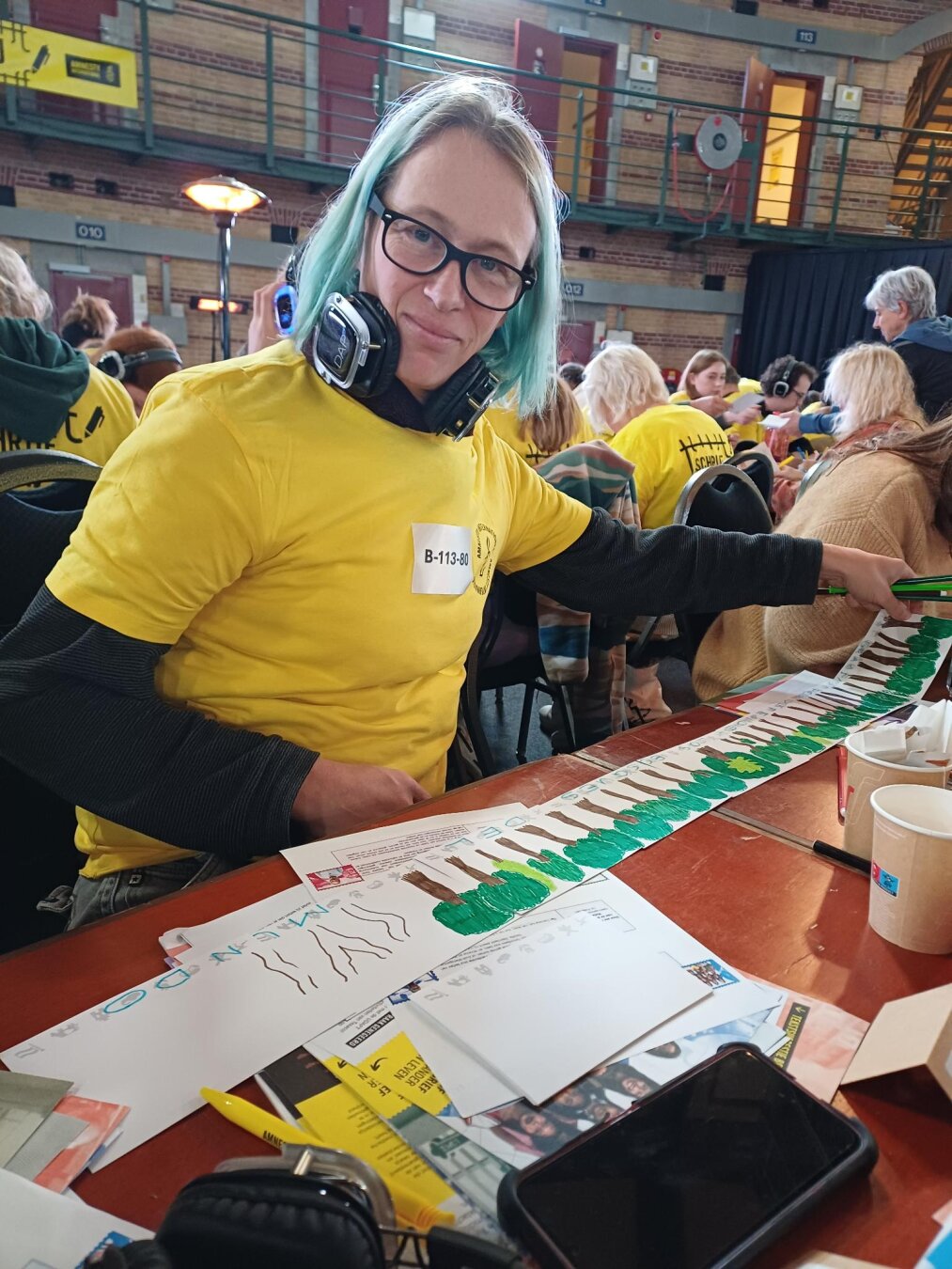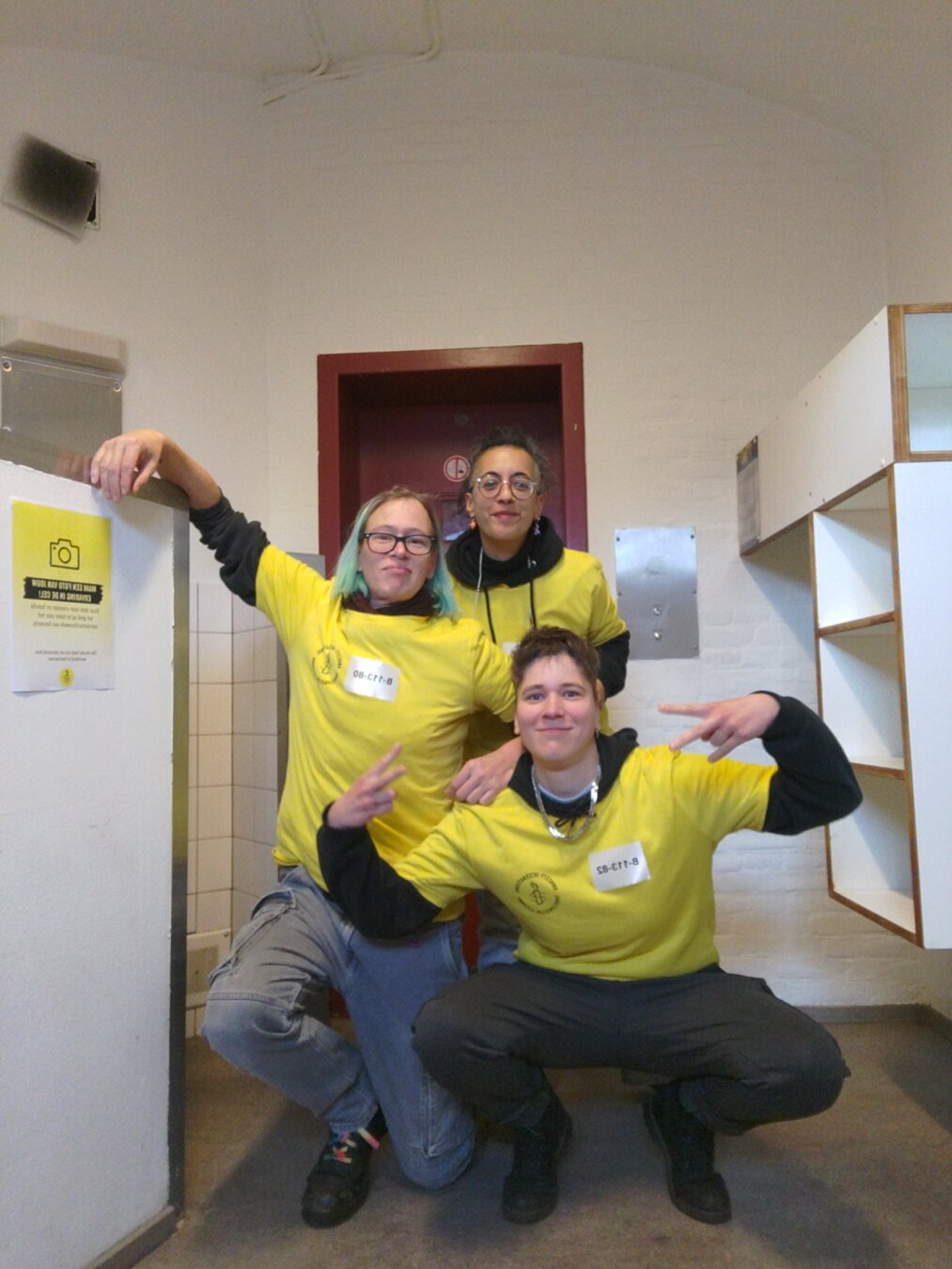 Today @Totalannarchy@pixelfed.social @ayala833@pixelfed.social and I went to prison for ten hours to write letters to political prisoners worldwide. Here's a photo of us in our cell (because we were in fact allowed to take photos). I'll post more photos in the upcoming few days #schrijfjevrij @amnestynl@mstdn.social #amnestyinternational #activism #prison #mugshot #jail #gevangenis #koepelgevangenis #activisme