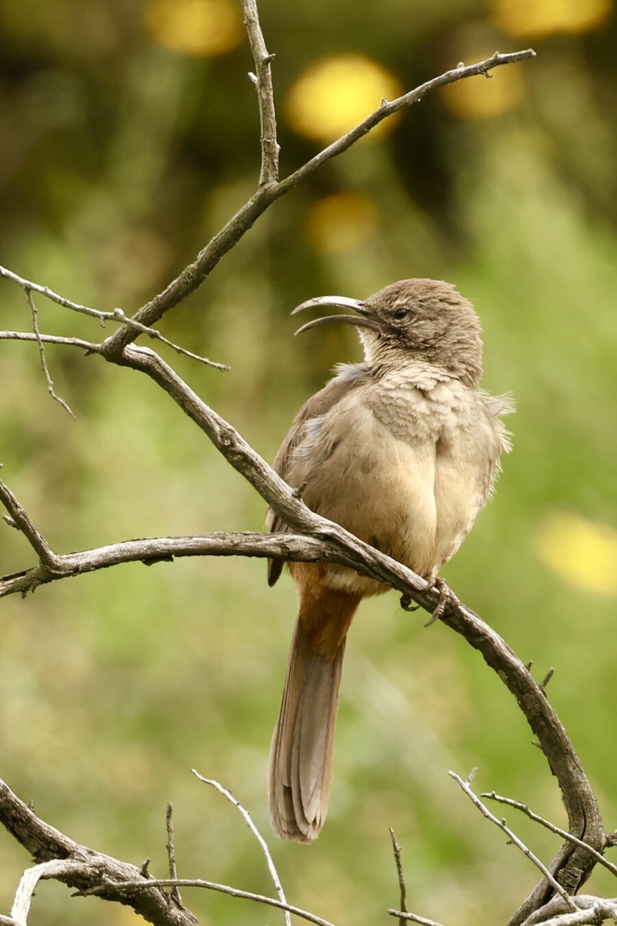 California Thrasher has a brilliant repertoire, able to mimic most other birds with tremendous volume.