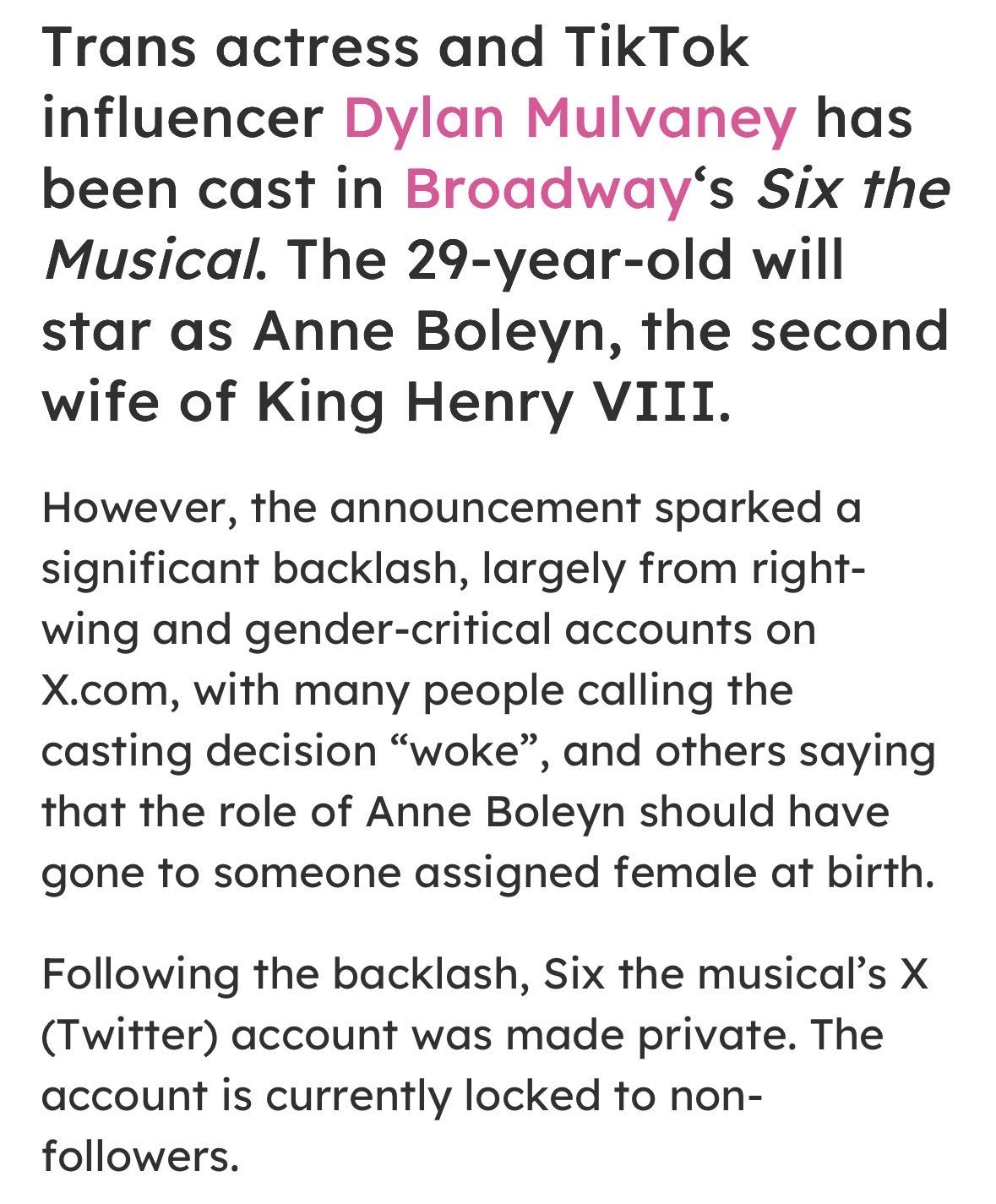 Worth noting that one of the two writers of Six is non-binary, and it has always had a diverse cast of women and non-binary people of various races and body types, the wives’ characters and songs being inspired by various singers such as Beyoncé, Rihanna and Nicki Minaj. The programme lists their pronouns