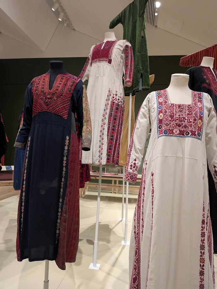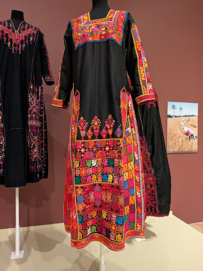These are a few of the garments on display. It was rather emotional walking around the exhibition, reading the stories, seeing an outfit that had been on display in a Palestinian museum until Israel decided to bomb it and destroy most of the things displayed there (I did not take a photo of that item, it felt wrong to do so, but perhaps I should return and take a photo of it).