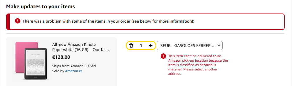 A tu komunikat, że mój malinowy Kindle jest niebezpieczny i mogę na nim czytać tylko książki o hazardzie.